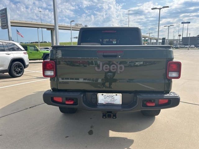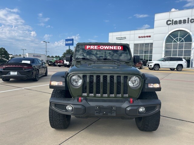 Clean CARFAX. Classic CDJR in Texarkana is proud to offer this wonderful 2022 Jeep Gladiator in Sarge Green Clearcoat. This 2022 Jeep Gladiator comes with the following features; Cold Weather Group (Heated Front Seats and Heated Steering Wheel), Quick Order Package 24R, Trailer Tow Package (240 Amp Alternator, Class IV Receiver Hitch, Heavy-Duty Engine Cooling, and Trailer Hitch Zoom), 4-Wheel Disc Brakes, 4:1 Rock-Trac HD Full Time 4WD System, 4.10 Rear Axle Ratio, 9 Speakers, 97 MPH Vehicle Max Speed Calibration, ABS brakes, Air Conditioning, Alloy wheels, AM/FM radio: SiriusXM, Apple CarPlay/Android Auto, Auto-dimming Rear-View mirror, Automatic temperature control, Black 3-Piece Hard Top, Bluetooth Wireless Speaker, Brake assist, Compass, Corning Gorilla Glass, Delay-off headlights, Driver door bin, Driver vanity mirror, Dual front impact airbags, Dual front side impact airbags, Electronic Stability Control, Emergency communication system: SiriusXM Guardian, Freedom Panel Storage Bag, Front anti-roll bar, Front Bucket Seats, Front Center Armrest w/Storage, Front dual zone A/C, Front fog lights, Front reading lights, Fully automatic headlights, Garage door transmitter, Heated door mirrors, Illuminated entry, Integrated roll-over protection, Leather steering wheel, Low tire pressure warning, MOPAR Spray In Bedliner, Navigation System, Occupant sensing airbag, Outside temperature display, Panic alarm, ParkView Rear Back-Up Camera, Passenger door bin, Passenger vanity mirror, Performance Suspension, Power door mirrors, Power steering, Power windows, Premium Cloth Low-Back Bucket Seats, Radio data system, Radio: Uconnect 4C Nav w/8.4" Display, Rear anti-roll bar, Rear reading lights, Rear Sliding Window, Rear Window Defroster, Remote keyless entry, Remote Start System, Security system, Speed control, Split folding rear seat, Steering wheel mounted audio controls, Tachometer, Telescoping steering wheel, Tilt steering wheel, Traction control, Trip computer, Variably intermittent wipers, Voltmeter, and Wheels: 17" x 7.5" Granite Crystal Aluminum.