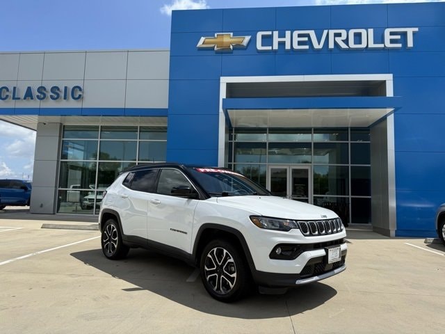 CARFAX One-Owner. 24/32 City/Highway MPG Bright White Clearcoat 2023 Jeep Compass Limited 2.0L I4 DOHC 4WD 8-Speed Automatic The 2023 Jeep Compass comes with the following features; Quick Order Package 29G, 4WD, 10.1 Touchscreen Display, 3.73 Final Drive Ratio, 4-Wheel Disc Brakes, 6 Speakers, ABS brakes, Air Conditioning, Alloy wheels, AM/FM radio: SiriusXM, Auto High-beam Headlights, Auto-dimming Rear-View mirror, Automatic temperature control, Brake assist, Bumpers: body-color, Compass, Delay-off headlights, Disassociated Touchscreen Display, Driver door bin, Driver vanity mirror, Dual front impact airbags, Dual front side impact airbags, Electronic Stability Control, For More Info, Call 800-643-2112, Four wheel independent suspension, Front anti-roll bar, Front Bucket Seats, Front Center Armrest w/Storage, Front dual zone A/C, Front fog lights, Front License Plate Bracket, Front reading lights, Fully automatic headlights, Heated door mirrors, Heated front seats, Heated steering wheel, Hidden Exhaust Tips-Dual, Illuminated entry, Knee airbag, Leather Shift Knob, Leatherette Seats, Low tire pressure warning, Occupant sensing airbag, Outside temperature display, Overhead airbag, Overhead console, Panic alarm, ParkView Rear Back-Up Camera, Passenger door bin, Passenger vanity mirror, Power door mirrors, Power driver seat, Power steering, Power windows, Radio: Uconnect 5 w/10.1 Display, Rain sensing wipers, Rear anti-roll bar, Rear seat center armrest, Rear window defroster, Rear window wiper, Remote keyless entry, Security system, SiriusXM Radio Service, Speed control, Split folding rear seat, Spoiler, Steering wheel mounted audio controls, Tachometer, Telescoping steering wheel, Tilt steering wheel, Traction control, Trip computer, Turn signal indicator mirrors, Variably intermittent wipers, and Wheels: 18 x 7 Painted Diamond Cut Aluminum. Back up camera, Bluetooth, Premium wheels, Keyless entry, Remote start, 4WD.