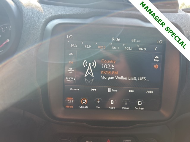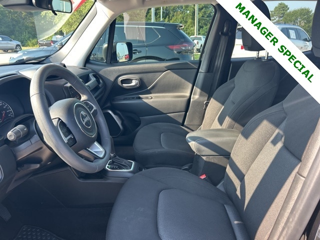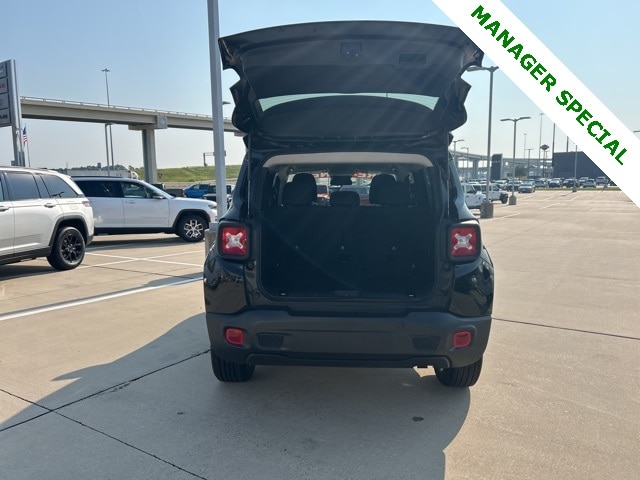 CARFAX One-Owner. Clean CARFAX. 23/29 City/Highway MPG Classic CDJR in Texarkana is proud to offer this stunning 2023 Jeep Renegade in Black Clearcoat. This 2023 Jeep Renegade comes with the following features; Quick Order Package 22B, 17" x 7.0" Aluminum Wheels, 3.734 Final Drive Ratio, 4-Wheel Disc Brakes, 6 Speakers, ABS brakes, Air Conditioning, Alloy wheels, AM/FM radio: SiriusXM, Anti-whiplash front head restraints, Apple CarPlay/Android Auto, Automatic temperature control, Brake assist, Cloth Bucket Seats, Compass, Delay-off headlights, Driver door bin, Driver vanity mirror, Dual front impact airbags, Dual front side impact airbags, Electronic Stability Control, Emergency communication system: SiriusXM Guardian, Four wheel independent suspension, Front anti-roll bar, Front Bucket Seats, Front Center Armrest, Front dual zone A/C, Front reading lights, Heated door mirrors, Illuminated entry, Knee airbag, Low tire pressure warning, Navigation System, Normal Duty Suspension, Occupant sensing airbag, Outside temperature display, Overhead airbag, ParkView Rear Back-Up Camera, Passenger door bin, Passenger vanity mirror, Power door mirrors, Power steering, Power windows, Radio data system, Radio: Uconnect 4C Nav w/8.4" Display, Rear anti-roll bar, Rear window defroster, Rear window wiper, Remote keyless entry, Roof rack: rails only, Security system, Speed control, Split folding rear seat, Spoiler, Steering wheel mounted audio controls, Tachometer, Telescoping steering wheel, Tilt steering wheel, Traction control, Trip computer, Variably intermittent wipers, and Voltmeter.