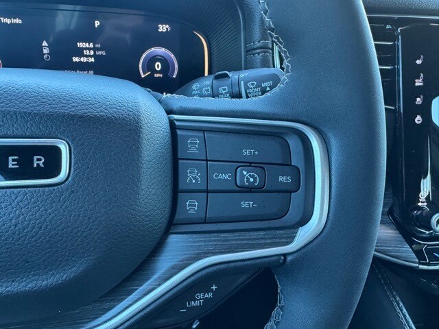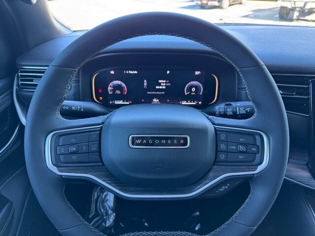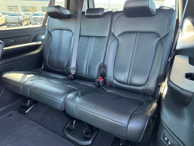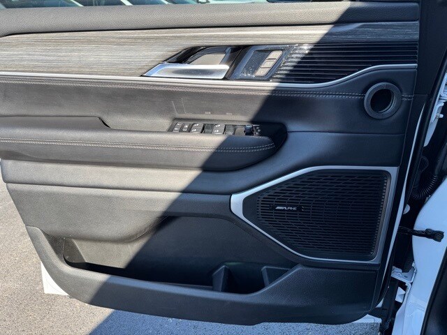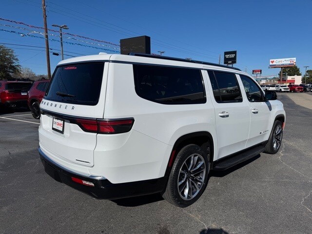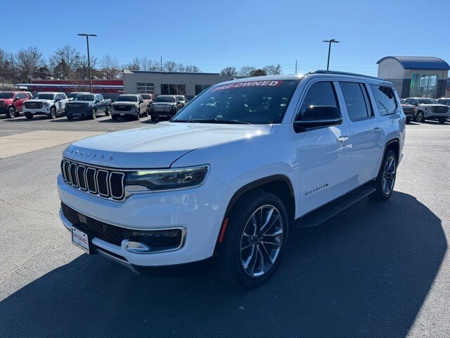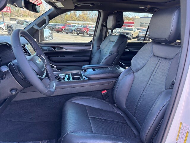 This 2023 Jeep Wagoneer L comes equipped with Flexible Seating Group (7-Passenger Seating, Floor Console w/Cupholder, and Power Tip/Slide Recline 2nd Row Buckets), Premium Group I (3 Panel Sunroof, Adjustable Roof Rail Crossbars, and Reversible Carpet/Vinyl Cargo Mat), Quick Order Package 25J, Navigation System, 10 Speakers, 3.55 Rear Axle Ratio, 3rd row seats: bench, 4-Wheel Disc Brakes, ABS brakes, Adjustable pedals, Air Conditioning, Alloy wheels, AM/FM radio: SiriusXM with 360L, Anti-whiplash front head restraints, Audio memory, Auto-dimming door mirrors, Auto-dimming Rear-View mirror, Auto-leveling suspension, Automatic temperature control, Brake assist, Bumpers: body-color, Compass, Delay-off headlights, Driver door bin, Driver vanity mirror, Driver's Seat Mounted Armrest, Dual front impact airbags, Dual front side impact airbags, Electronic Stability Control, Emergency communication system: Automatic SOS Call, Exterior Parking Camera Rear, Four wheel independent suspension, Front anti-roll bar, Front Bucket Seats, Front Center Armrest w/Storage, Front dual zone A/C, Front fog lights, Front reading lights, Fully automatic headlights, Garage door transmitter, Genuine wood console insert, Genuine wood dashboard insert, Genuine wood door panel insert, Heated door mirrors, Heated front seats, Heated steering wheel, Illuminated entry, Knee airbag, Leather Trimmed Bucket Seats, Low tire pressure warning, Memory seat, Normal Duty Suspension, Occupant sensing airbag, Outside temperature display, Overhead airbag, Overhead console, Panic alarm, Passenger door bin, Passenger seat mounted armrest, Passenger vanity mirror, Pedal memory, Power adjustable front head restraints, Power door mirrors, Power driver seat, Power Liftgate, Power passenger seat, Power steering, Power windows, Radio data system, Radio: Uconnect 5 Nav w/10.1" Display, Rain sensing wipers, Rear air conditioning, Rear anti-roll bar, Rear reading lights, Rear seat center armrest, Rear window defroster, Rear window wiper, Reclining 3rd row seat, Remote keyless entry, Security system, Speed control, Speed-sensing steering, Speed-Sensitive Wipers, Split folding rear seat, Steering wheel memory, Steering wheel mounted audio controls, Tachometer, Telescoping steering wheel, Tilt steering wheel, Traction control, Trip computer, Turn signal indicator mirrors, Variably intermittent wipers, Ventilated front seats, Voltmeter, Wheels: 20" x 9.0" Premium 2 Aluminum, and Wheels: 22" x 9.0" Premium 3 Aluminum. CARFAX One-Owner. One Owner Carfax, 3 Panel Sunroof, 7-Passenger Seating, Adjustable Roof Rail Crossbars, Flexible Seating Group, Floor Console w/Cupholder, Navigation System, Power Tip/Slide Recline 2nd Row Buckets, Premium Group I, Quick Order Package 25J, Reversible Carpet/Vinyl Cargo Mat.