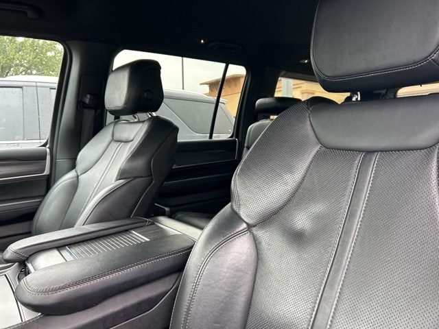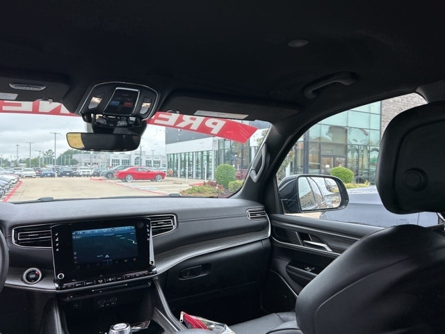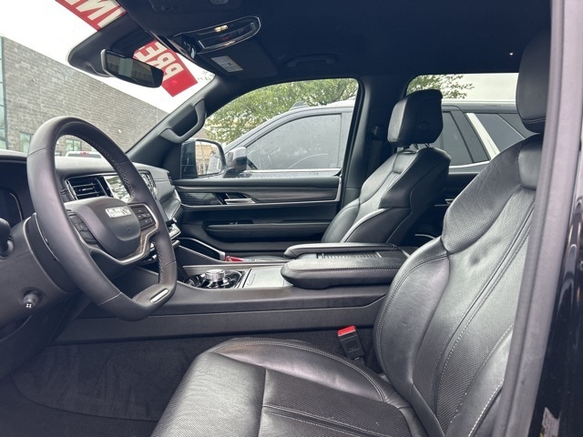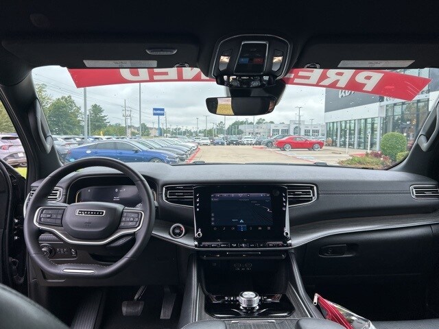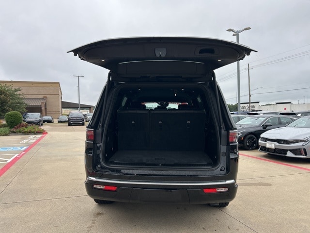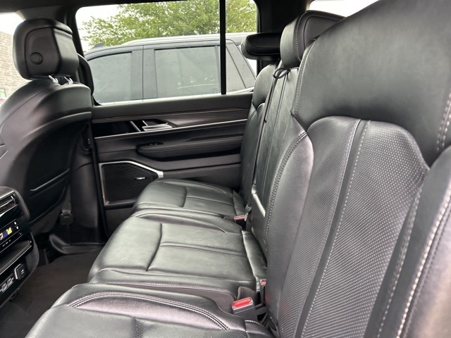 The 2023 Jeep Wagoneer comes with the following features; Preferred Equipment Group (60/40 Power Recline 3rd Row Seat and Heads-Up Display), Quick Order Package 25N, 10 Speakers, 20" x 9.0" Aluminum Wheels, 3.55 Rear Axle Ratio, 3rd row seats: bench, 4-Wheel Disc Brakes, ABS brakes, Adjustable pedals, Air Conditioning, Alloy wheels, AM/FM radio: SiriusXM with 360L, Anti-whiplash front head restraints, Audio memory, Auto High-beam Headlights, Auto-dimming door mirrors, Auto-dimming Rear-View mirror, Auto-leveling suspension, Automatic temperature control, Brake assist, Bumpers: body-color, Compass, Delay-off headlights, Driver door bin, Driver vanity mirror, Driver's Seat Mounted Armrest, Dual front impact airbags, Dual front side impact airbags, Electronic Stability Control, Emergency communication system: Automatic SOS Call, Exterior Parking Camera Rear, Four wheel independent suspension, Front anti-roll bar, Front Bucket Seats, Front Center Armrest w/Storage, Front dual zone A/C, Front fog lights, Front reading lights, Fully automatic headlights, Garage door transmitter, Genuine wood console insert, Genuine wood dashboard insert, Genuine wood door panel insert, Heated door mirrors, Heated front seats, Heated rear seats, Heated steering wheel, Illuminated entry, Knee airbag, Leather Trimmed Bucket Seats, Low tire pressure warning, Memory seat, Navigation System, Normal Duty Suspension, Occupant sensing airbag, Outside temperature display, Overhead airbag, Overhead console, Panic alarm, Passenger door bin, Passenger seat mounted armrest, Passenger vanity mirror, Pedal memory, Power adjustable front head restraints, Power door mirrors, Power driver seat, Power Liftgate, Power passenger seat, Power steering, Power windows, Radio data system, Radio: Uconnect 5 Nav w/10.1" Display, Rain sensing wipers, Rear air conditioning, Rear anti-roll bar, Rear dual zone A/C, Rear reading lights, Rear seat center armrest, Rear window defroster, Rear window wiper, Reclining 3rd row seat, Remote keyless entry, Security system, Speed control, Speed-sensing steering, Speed-Sensitive Wipers, Split folding rear seat, Steering wheel memory, Steering wheel mounted audio controls, Tachometer, Telescoping steering wheel, Tilt steering wheel, Traction control, Trip computer, Turn signal indicator mirrors, Variably intermittent wipers, Ventilated front seats, and Voltmeter.