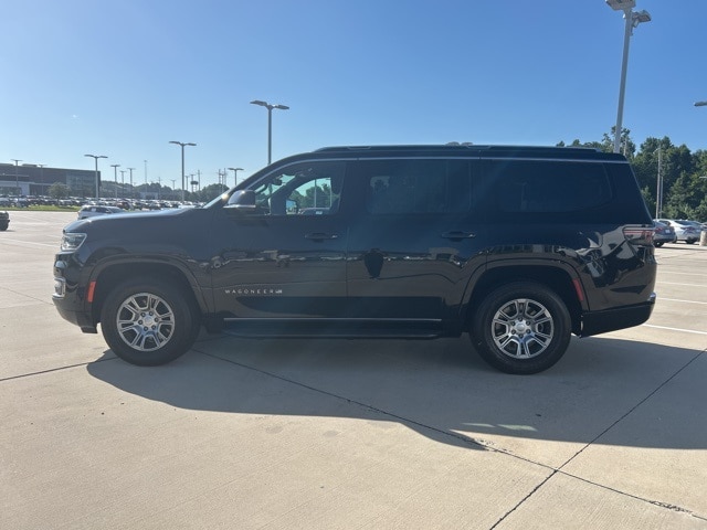 CARFAX One-Owner. Classic CDJR in Texarkana is proud to offer this fantastic-looking 2023 Jeep Wagoneer in Diamond Black Crystal Pearlcoat. This 2023 Jeep Wagoneer comes with the following features; Quick Order Package 22E (DISC), 10 Speakers, 3.21 Rear Axle Ratio, 3rd row seats: bench, 4-Wheel Disc Brakes, ABS brakes, Adjustable pedals, Air Conditioning, Alloy wheels, AM/FM radio: SiriusXM with 360L, Anti-whiplash front head restraints, Audio memory, Auto-dimming door mirrors, Auto-dimming Rear-View mirror, Auto-leveling suspension, Automatic temperature control, Brake assist, Bumpers: body-color, Compass, Delay-off headlights, Driver door bin, Driver vanity mirror, Driver's Seat Mounted Armrest, Dual front impact airbags, Dual front side impact airbags, Electronic Stability Control, Emergency communication system: Automatic SOS Call, Exterior Parking Camera Rear, Four wheel independent suspension, Front anti-roll bar, Front Bucket Seats, Front Center Armrest w/Storage, Front dual zone A/C, Front fog lights, Front reading lights, Fully automatic headlights, Garage door transmitter, Heated door mirrors, Heated front seats, Heated steering wheel, Illuminated entry, Knee airbag, Leather Trimmed Bucket Seats, Low tire pressure warning, Memory seat, Navigation System, Normal Duty Suspension, Occupant sensing airbag, Outside temperature display, Overhead airbag, Overhead console, Panic alarm, Passenger door bin, Passenger seat mounted armrest, Passenger vanity mirror, Pedal memory, Power adjustable front head restraints, Power door mirrors, Power driver seat, Power Liftgate, Power passenger seat, Power steering, Power windows, Radio data system, Radio: Uconnect 5 Nav w/10.1" Display, Rear air conditioning, Rear anti-roll bar, Rear dual zone A/C, Rear reading lights, Rear seat center armrest, Rear window defroster, Rear window wiper, Reclining 3rd row seat, Remote keyless entry, Security system, Speed control, Speed-sensing steering, Speed-Sensitive Wipers, Split folding rear seat, Steering wheel memory, Steering wheel mounted audio controls, Tachometer, Telescoping steering wheel, Tilt steering wheel, Traction control, Trip computer, Turn signal indicator mirrors, Variably intermittent wipers, Ventilated front seats, Voltmeter, and Wheels: 18" x 8.0" Aluminum Base Finish.