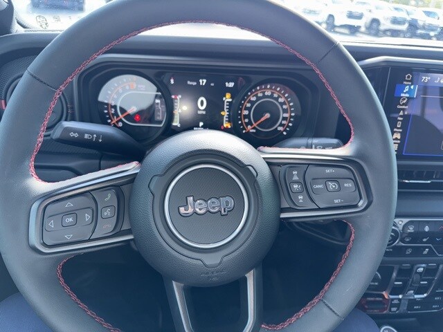 This 2024 Jeep Gladiator comes equipped with Quick Order Package 24Y Rubicon X (4G LTE Wi-Fi Hot Spot, Alpine Premium Audio System, Auto High Beam Headlamp Control, Auto-Dimming Rear-View Mirror, Blind Spot & Cross Path Detection, Bluetooth Wireless Speaker, Body Color 3-Piece Hard Top, Body Color Rubicon Highline Flare, Connected Travel & Traffic Services, Connectivity - US/Canada, Emergency/Assistance Call, Freedom Panel Storage Bag, GPS Antenna Input, HD Radio, Heated Front Seats, Heated Steering Wheel, Integrated Center Stack Radio, Integrated Off-Road Camera, Integrated Voice Command w/Bluetooth, MOPAR Hardtop Headliner, ParkSense Rear Park Assist System, Power Adjust Nappa Leather Seats, Radio: Uconnect 5 Nav w/12.3" Display, Rear Sliding Window, Rear Window Defroster, SiriusXM Radio Service, SiriusXM w/360L, Steel Front Bumper, USB Host Flip, Full Length Floor Console Premium Armrest, Leather Wrapped Park Brake Handle, Leather Wrapped Shift Knob, Power 4-Way Driver Lumbar Adjust, Power 4-Way Passenger Lumbar Adjust, Power Adjust 8-Way Driver Seat, Power Adjust 8-Way Front Passenger Seat, Premium Door Trim Panel, and Rear Armrest w/Cupholder Seat), Rubicon X Package, 12.3" Touchscreen Display, 4-Wheel Disc Brakes, 4.10 Rear Axle Ratio, 8 Speakers, 97 MPH Vehicle Max Speed Calibration, ABS brakes, Air Conditioning, Alexa Built-In, Alloy wheels, AM/FM radio: SiriusXM with 360L, Apple CarPlay, Apple CarPlay/Android Auto, Automatic temperature control, Brake assist, Cloth Low-Back Bucket Seats, Compass, Delay-off headlights, Driver door bin, Driver vanity mirror, Dual front impact airbags, Dual front side impact airbags, Electronic Stability Control, Emergency communication system: Jeep Connect, Front anti-roll bar, Front Bucket Seats, Front Center Armrest w/Storage, Front dual zone A/C, Front fog lights, Front reading lights, Fully automatic headlights, Google Android Auto, Heated door mirrors, Illuminated entry, Integrated roll-over protection, Jeep Trail Rated Kit, Low tire pressure warning, MOPAR All-Weather Slush Mats, MOPAR Spray In Bedliner, Occupant sensing airbag, Outside temperature display, Overhead airbag, Panic alarm, Passenger door bin, Passenger vanity mirror, Performance Suspension, Power door mirrors, Power steering, Power windows, Radio data system, Radio: Uconnect 5 w/12.3" Display, Rear anti-roll bar, Rear reading lights, Remote keyless entry, Security system, Speed control, Split folding rear seat, Steering wheel mounted audio controls, Tachometer, Telescoping steering wheel, Tilt steering wheel, Traction control, Trip computer, Variably intermittent wipers, Voltmeter, and Wheels: 17" x 7.5" Machined/Painted Black. CARFAX One-Owner. Clean CARFAX. One Owner Carfax, 4G LTE Wi-Fi Hot Spot, Alpine Premium Audio System, Auto High Beam Headlamp Control, Auto-Dimming Rear-View Mirror, Blind Spot & Cross Path Detection, Bluetooth Wireless Speaker, Body Color 3-Piece Hard Top, Body Color Rubicon Highline Flare, Connected Travel & Traffic Services, Connectivity - US/Canada, Emergency/Assistance Call, Freedom Panel Storage Bag, GPS Antenna Input, HD Radio, Heated Front Seats, Heated Steering Wheel, Integrated Center Stack Radio, Integrated Off-Road Camera, Integrated Voice Command w/Bluetooth, MOPAR Hardtop Headliner, ParkSense Rear Park Assist System, Power Adjust Nappa Leather Seats, Quick Order Package 24Y Rubicon X, Radio: Uconnect 5 Nav w/12.3" Display, Rear Sliding Window, Rear Window Defroster, Rubicon X Package, SiriusXM Radio Service, SiriusXM w/360L, Steel Front Bumper, USB Host Flip.