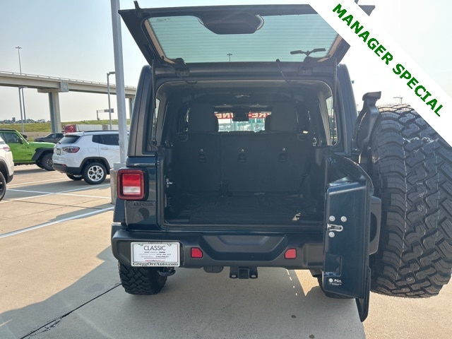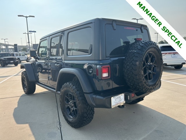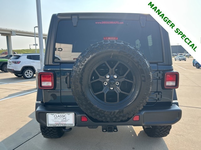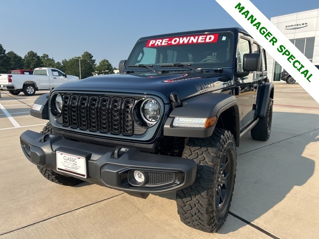 CARFAX One-Owner. Clean CARFAX. Classic CDJR in Texarkana is proud to offer this good-looking and fun 2025 Jeep Wrangler in Fathom Blue Pearlcoat. This 2025 Jeep Wrangler comes with the following features; Convenience Group (2-Door Passive Entry, Front Door Locks, Air Conditioning w/Auto Temperature Control, Air Filtering, Cluster 7.0" TFT Color Display, Emergency/Assistance Call, Heated Front Seats, Heated Steering Wheel, Remote Start System, and Universal Garage Door Opener), Quick Order Package 22W Willys (4-Wheel Drive Swing Gate Decal, 4.10 Rear Axle Ratio, 7 & 4 Pin Wiring Harness, 97 MPH Vehicle Max Speed Calibration, Advanced Brake Assist, Automatic Headlamps, Auxiliary Switches, Black Grille, Class II Receiver Hitch, Conventional Differential Front Axle, Corning Gorilla Glass, Dana M210 Wide HD Tube Front Axle, Dana M220 Wide Rear Axle, Daytime Running Lamps LED Accents, Deep Tint Sunscreen Windows, E-Locker Rear Axle, Enhanced Adaptive Cruise Control, Front LED Fog Lamps, Full Speed Forward Collision Warning Plus, Injection Molded Black Rear Bumper, LED Premium Reflector Headlamps, Mold In Color Bumper w/Gloss Black, Molded in Color Rubicon Highline Flare, MOPAR All-Weather Floor Mats, Off-Road Plus Mode, Power Heated Mirrors, Premium Wrapped Steering Wheel, Security Alarm, Sun Visors w/Illuminated Vanity Mirrors, Wheels: 17" x 7.5" Painted Black, Willy's Suspension, and Willys Hood Decal), 110 MPH Vehicle Max Speed Calibration, 3.45 Overall Top Gear Ratio, 4-Wheel Disc Brakes, 8 Speakers, ABS brakes, Air Conditioning, AM/FM radio: SiriusXM, Apple CarPlay/Android Auto, Aux Battery, Black 3-Piece Hard Top, Brake assist, Cloth Low-Back Bucket Seats, Compass, Delay-off headlights, Driver door bin, Driver vanity mirror, Dual front impact airbags, Dual front side impact airbags, Electronic Stability Control, Freedom Panel Storage Bag, Front anti-roll bar, Front Bucket Seats, Front Center Armrest w/Storage, Front fog lights, Front reading lights, Illuminated entry, Integrated roll-over protection, Low tire pressure warning, Non-Lock Fuel Cap w/o Discriminator, Normal Duty Suspension, Occupant sensing airbag, Outside temperature display, Overhead airbag, Panic alarm, ParkView Rear Back-Up Camera, Passenger door bin, Passenger vanity mirror, Power steering, Power windows, Radio data system, Radio: Uconnect 5 w/12.3" Display, Rear anti-roll bar, Rear reading lights, Rear Window Defroster, Rear Window Wiper/Washer, Remote keyless entry, Speed control, Split folding rear seat, Steering wheel mounted audio controls, Stop-Start Dual Battery System, Tachometer, Telescoping steering wheel, Tilt steering wheel, Traction control, Trip computer, Variably intermittent wipers, and Wheels: 17" x 7.5" Black Steel Styled.