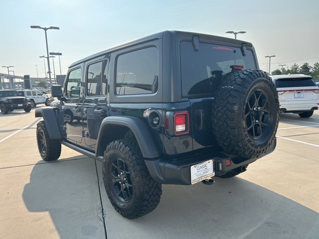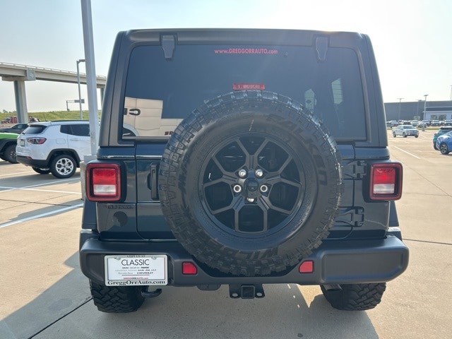 CARFAX One-Owner. Clean CARFAX. Classic CDJR in Texarkana is proud to offer this superb-looking and fun 2025 Jeep Wrangler in Fathom Blue Pearlcoat. This 2025 Jeep Wrangler comes with the following features; Convenience Group (2-Door Passive Entry, Front Door Locks, Air Conditioning w/Auto Temperature Control, Air Filtering, Cluster 7.0" TFT Color Display, Emergency/Assistance Call, Heated Front Seats, Heated Steering Wheel, Remote Start System, and Universal Garage Door Opener), Quick Order Package 22W Willys (4-Wheel Drive Swing Gate Decal, 4.10 Rear Axle Ratio, 7 & 4 Pin Wiring Harness, 97 MPH Vehicle Max Speed Calibration, Advanced Brake Assist, Automatic Headlamps, Auxiliary Switches, Black Grille, Class II Receiver Hitch, Conventional Differential Front Axle, Corning Gorilla Glass, Dana M210 Wide HD Tube Front Axle, Dana M220 Wide Rear Axle, Daytime Running Lamps LED Accents, Deep Tint Sunscreen Windows, E-Locker Rear Axle, Enhanced Adaptive Cruise Control, Front LED Fog Lamps, Full Speed Forward Collision Warning Plus, Injection Molded Black Rear Bumper, LED Premium Reflector Headlamps, Mold In Color Bumper w/Gloss Black, Molded in Color Rubicon Highline Flare, MOPAR All-Weather Floor Mats, Off-Road Plus Mode, Power Heated Mirrors, Premium Wrapped Steering Wheel, Security Alarm, Sun Visors w/Illuminated Vanity Mirrors, Wheels: 17" x 7.5" Painted Black, Willy's Suspension, and Willys Hood Decal), 110 MPH Vehicle Max Speed Calibration, 3.45 Overall Top Gear Ratio, 4-Wheel Disc Brakes, 8 Speakers, ABS brakes, Air Conditioning, AM/FM radio: SiriusXM, Apple CarPlay/Android Auto, Aux Battery, Black 3-Piece Hard Top, Brake assist, Cloth Low-Back Bucket Seats, Compass, Delay-off headlights, Driver door bin, Driver vanity mirror, Dual front impact airbags, Dual front side impact airbags, Electronic Stability Control, Freedom Panel Storage Bag, Front anti-roll bar, Front Bucket Seats, Front Center Armrest w/Storage, Front fog lights, Front reading lights, Illuminated entry, Integrated roll-over protection, Low tire pressure warning, Non-Lock Fuel Cap w/o Discriminator, Normal Duty Suspension, Occupant sensing airbag, Outside temperature display, Overhead airbag, Panic alarm, ParkView Rear Back-Up Camera, Passenger door bin, Passenger vanity mirror, Power steering, Power windows, Radio data system, Radio: Uconnect 5 w/12.3" Display, Rear anti-roll bar, Rear reading lights, Rear Window Defroster, Rear Window Wiper/Washer, Remote keyless entry, Speed control, Split folding rear seat, Steering wheel mounted audio controls, Stop-Start Dual Battery System, Tachometer, Telescoping steering wheel, Tilt steering wheel, Traction control, Trip computer, Variably intermittent wipers, and Wheels: 17" x 7.5" Black Steel Styled.