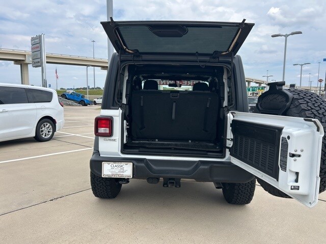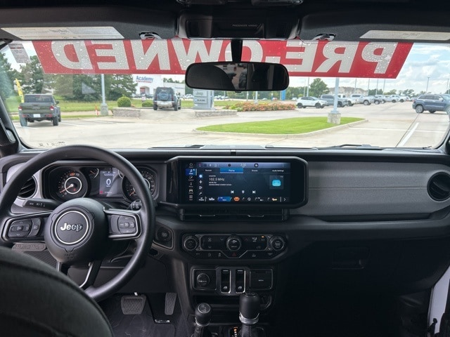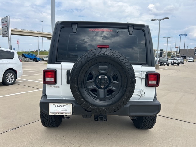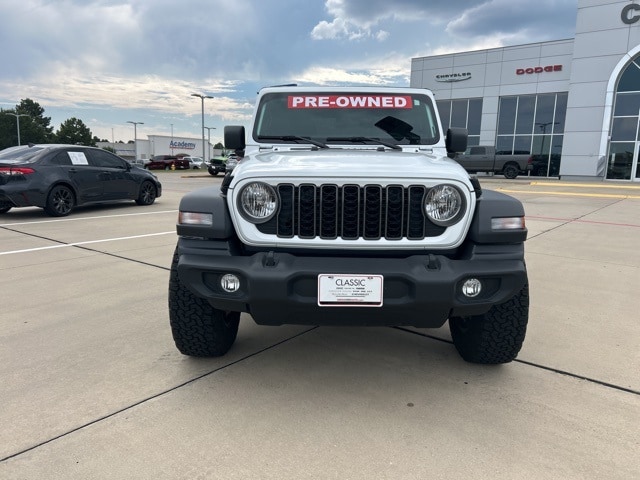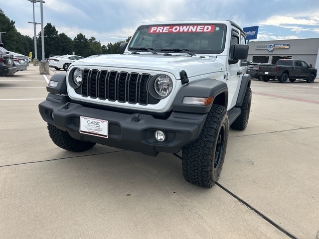 CARFAX One-Owner. Clean CARFAX. Classic CDJR in Texarkana is proud to offer this good-looking and fun 2025 Jeep Wrangler in Bright White Clearcoat. This 2025 Jeep Wrangler comes with the following features; Quick Order Package 22B Sport, 110 MPH Vehicle Max Speed Calibration, 3.45 Overall Top Gear Ratio, 4-Wheel Disc Brakes, 8 Speakers, ABS brakes, Air Conditioning, AM/FM radio: SiriusXM, Apple CarPlay/Android Auto, Aux Battery, Black 3-Piece Hard Top, Brake assist, Cloth Low-Back Bucket Seats, Compass, Delay-off headlights, Driver door bin, Driver vanity mirror, Dual front impact airbags, Dual front side impact airbags, Electronic Stability Control, Freedom Panel Storage Bag, Front anti-roll bar, Front Bucket Seats, Front Center Armrest w/Storage, Front fog lights, Front reading lights, Illuminated entry, Integrated roll-over protection, Low tire pressure warning, MOPAR All-Weather Floor Mats, Non-Lock Fuel Cap w/o Discriminator, Normal Duty Suspension, Occupant sensing airbag, Outside temperature display, Overhead airbag, Panic alarm, ParkView Rear Back-Up Camera, Passenger door bin, Passenger vanity mirror, Power steering, Power windows, Radio data system, Radio: Uconnect 5 w/12.3" Display, Rear anti-roll bar, Rear reading lights, Rear Window Defroster, Rear Window Wiper/Washer, Remote keyless entry, Speed control, Steering wheel mounted audio controls, Stop-Start Dual Battery System, Tachometer, Telescoping steering wheel, Tilt steering wheel, Traction control, Trip computer, Variably intermittent wipers, and Wheels: 17" x 7.5" Black Steel Styled.