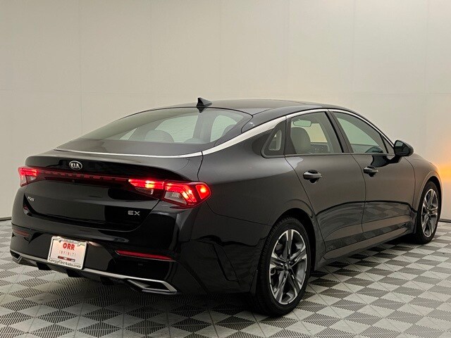 **CRUISE IN STYLE WITH THE 2021 KIA K5 EX IN EBONY BLACK, A FWD SEDAN FEATURING A SOFT SAND INTERIOR THAT BLENDS COMFORT WITH CLASS. THIS K5 DELIVERS A SMOOTH RIDE AND SMART FEATURES, MAKING EVERY DRIVE A PLEASURE. READY TO TURN YOUR COMMUTE INTO A FIRST-CLASS EXPERIENCE? THIS KIA IS READY TO MAKE YOUR DAILY DRIVES SHINE.**.