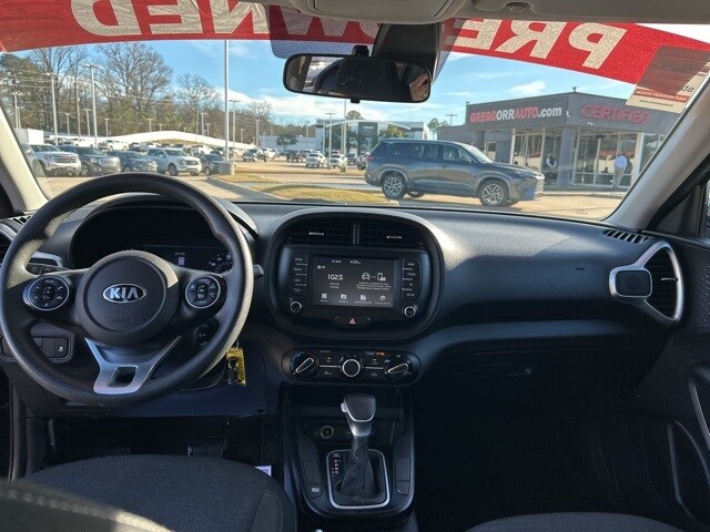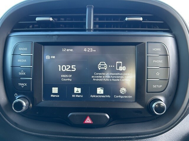 This 2021 Kia Soul comes equipped with the following features 4-Wheel Disc Brakes, 6 Speakers, ABS brakes, Air Conditioning, Alloy wheels, AM/FM radio, Apple CarPlay & Android Auto, Brake assist, Bumpers: body-color, Carpeted Floor Mats, Delay-off headlights, Driver door bin, Driver vanity mirror, Dual front impact airbags, Dual front side impact airbags, Electronic Stability Control, Exterior Parking Camera Rear, Front anti-roll bar, Front Bucket Seats, Front Center Armrest, Front reading lights, Front wheel independent suspension, Fully automatic headlights, Low tire pressure warning, Occupant sensing airbag, Outside temperature display, Overhead airbag, Overhead console, Passenger door bin, Passenger vanity mirror, Power door mirrors, Power driver seat, Power steering, Power windows, Premium Cloth Seat Trim, Radio: AM/FM/MP3 Audio System, Rear window defroster, Rear window wiper, Remote keyless entry, Speed control, Speed-sensing steering, Split folding rear seat, Steering wheel mounted audio controls, Tachometer, Telescoping steering wheel, Tilt steering wheel, Traction control, Trip computer, Variably intermittent wipers, and Wheels: 16" x 6.5 Alloy. 2021 Kia Soul S FWD 2.0L I4 MPI DOHC 16V LEV3-SULEV30 147hp