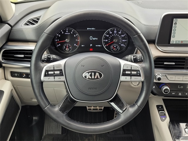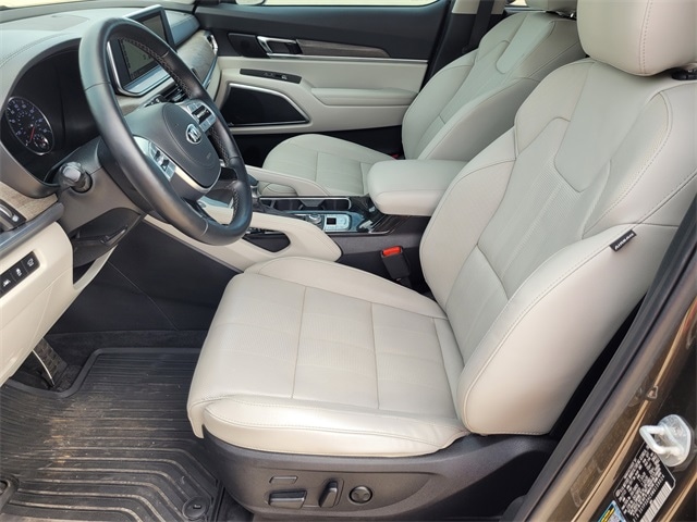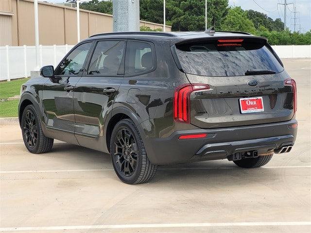 This 2021 Kia Telluride comes equipped with Nightfall Edition Package (Black Finish Radiator Grille, Body Color Exterior Door Handles, Exclusive Black Fog Light Bezel, Exclusive Black Headlight Bezels, Front & Rear Gloss Black Finish Bumper Skid Plates, Front & Rear KIA Logo, Gloss Black Finish Exterior Emblems, Gloss Black Finish Front & Rear Door Garnish, Gloss Black Finish Roof Rails, and Wheels: 7.5" x 20" Exclusive Black Finish Alloy), Towing Package (Self Leveling Rear Suspension and Tow Hitch w/Harness (TOF)), Navigation System, 10 Speakers, 3.648 Axle Ratio, 3rd row seats: split-bench, 4-Wheel Disc Brakes, ABS brakes, Air Conditioning, Alloy wheels, AM/FM radio: SiriusXM, Apple CarPlay & Android Auto, Auto High-beam Headlights, Auto-dimming Rear-View mirror, Automatic temperature control, Brake assist, Bumpers: body-color, Carpeted Floor Mats, Compass, Delay-off headlights, Driver door bin, Driver vanity mirror, Dual front impact airbags, Dual front side impact airbags, Electronic Stability Control, Emergency communication system: 911 Connect, Four wheel independent suspension, Front anti-roll bar, Front Bucket Seats, Front Center Armrest, Front dual zone A/C, Front fog lights, Front reading lights, Fully automatic headlights, Garage door transmitter: HomeLink, Heated & Ventilated Front Bucket Seats, Heated door mirrors, Heated front seats, Heated steering wheel, Illuminated entry, Knee airbag, Leather Seat Trim, Leather Shift Knob, Leather steering wheel, Low tire pressure warning, Memory seat, Occupant sensing airbag, Outside temperature display, Overhead airbag, Overhead console, Panic alarm, Passenger door bin, Passenger vanity mirror, Power door mirrors, Power driver seat, Power Liftgate, Power moonroof, Power passenger seat, Power steering, Power windows, Radio data system, Radio: AM/FM/SIRIUS Premium Audio, Rear air conditioning, Rear anti-roll bar, Rear audio controls, Rear reading lights, Rear window defroster, Rear window wiper, Reclining 3rd row seat, Remote keyless entry, Roof rack: rails only, Security system, Smart Key w/ Push Button and Remote Start, Speed control, Speed-sensing steering, Split folding rear seat, Spoiler, Steering wheel mounted audio controls, Tachometer, Telescoping steering wheel, Tilt steering wheel, Traction control, Trip computer, Turn signal indicator mirrors, Variably intermittent wipers, Ventilated front seats, and Wheels: 7.5" x 20" Black Finish Alloy. CARFAX One-Owner. Clean CARFAX. One Owner Carfax, Black Finish Radiator Grille, Body Color Exterior Door Handles, Exclusive Black Fog Light Bezel, Exclusive Black Headlight Bezels, Front & Rear Gloss Black Finish Bumper Skid Plates, Front & Rear KIA Logo, Gloss Black Finish Exterior Emblems, Gloss Black Finish Front & Rear Door Garnish, Gloss Black Finish Roof Rails, Navigation System, Nightfall Edition Package, Self Leveling Rear Suspension, Tow Hitch w/Harness (TOF), Towing Package, Wheels: 7.5" x 20" Exclusive Black Finish Alloy.