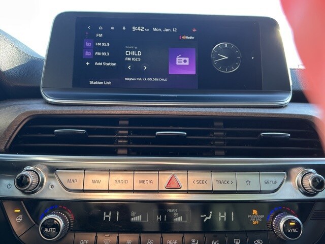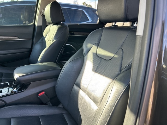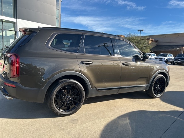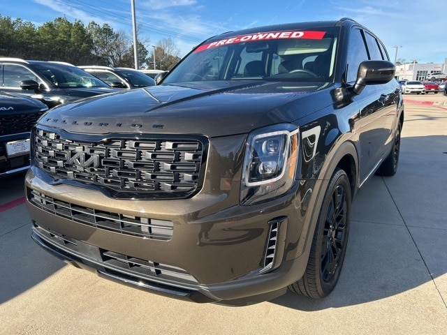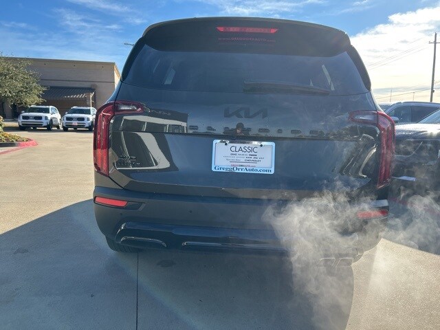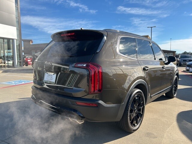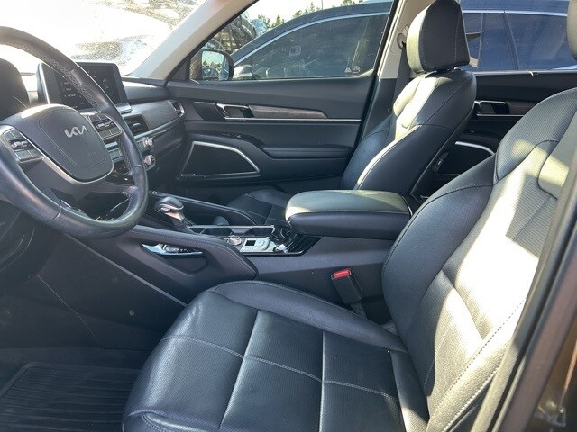 The 2022 Kia Telluride comes with the following features; EX Premium Package (20" x 7.5" Machined Alloy Wheels, 2nd Row Captain Chairs, LED Headlamps, and Satin Chrome Roof Rails), Nightfall Edition Package (Black Finish Radiator Grille, Exclusive Black Headlight Bezels, Front & Rear Gloss Black Finish Bumper Skid Plates, Gloss Black Finish Exterior Emblems, Gloss Black Finish Front & Rear Door Garnish, Gloss Black Finish Roof Rails, and Wheels: 20" x 7.5" Exclusive Black Alloy), 3.648 Axle Ratio, 3rd row seats: split-bench, 4-Wheel Disc Brakes, 6 Speakers, ABS brakes, Air Conditioning, Alloy wheels, AM/FM radio: SiriusXM, Apple CarPlay & Android Auto, Auto-dimming Rear-View mirror, Automatic temperature control, Brake assist, Bumpers: body-color, Compass, Delay-off headlights, Driver door bin, Driver vanity mirror, Dual front impact airbags, Dual front side impact airbags, Electronic Stability Control, Emergency communication system: 911 Connect, Four wheel independent suspension, Front anti-roll bar, Front Bucket Seats, Front Center Armrest, Front dual zone A/C, Front reading lights, Fully automatic headlights, Heated & Ventilated Front Bucket Seats, Heated door mirrors, Heated front seats, Heated steering wheel, Illuminated entry, Knee airbag, Leather Seat Trim, Leather Shift Knob, Leather steering wheel, Low tire pressure warning, Navigation System, Occupant sensing airbag, Outside temperature display, Overhead airbag, Overhead console, Panic alarm, Passenger door bin, Passenger vanity mirror, Power door mirrors, Power driver seat, Power Liftgate, Power moonroof, Power passenger seat, Power steering, Power windows, Radio data system, Radio: AM/FM Display Audio System, Rear air conditioning, Rear anti-roll bar, Rear audio controls, Rear reading lights, Rear seat center armrest, Rear window defroster, Rear window wiper, Reclining 3rd row seat, Remote keyless entry, Roof rack: rails only, Security system, Smart Key w/ Push Button and Remote Start, Speed control, Speed-sensing steering, Split folding rear seat, Spoiler, Steering wheel mounted audio controls, Tachometer, Telescoping steering wheel, Tilt steering wheel, Traction control, Trip computer, Turn signal indicator mirrors, Variably intermittent wipers, Ventilated front seats, and Wheels: 18" x 7.5" Machined Alloy.