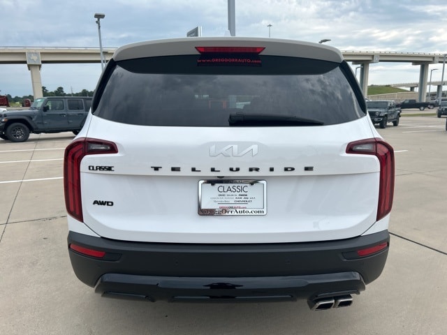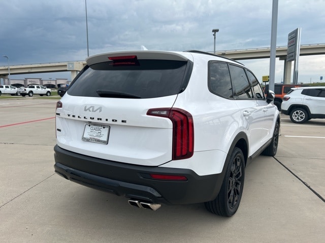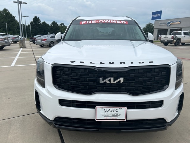 CARFAX One-Owner. Classic CDJR in Texarkana is proud to offer this good-looking 2022 Kia Telluride in Glacial White Pearl. This 2022 Kia Telluride comes with the following features; EX Premium Package (20" x 7.5" Machined Alloy Wheels, 2nd Row Captain Chairs, LED Headlamps, and Satin Chrome Roof Rails), Nightfall Edition Package (Black Finish Radiator Grille, Exclusive Black Headlight Bezels, Front & Rear Gloss Black Finish Bumper Skid Plates, Gloss Black Finish Exterior Emblems, Gloss Black Finish Front & Rear Door Garnish, Gloss Black Finish Roof Rails, and Wheels: 20" x 7.5" Exclusive Black Alloy), 3.648 Axle Ratio, 3rd row seats: split-bench, 4-Wheel Disc Brakes, 6 Speakers, ABS brakes, Air Conditioning, Alloy wheels, AM/FM radio: SiriusXM, Apple CarPlay & Android Auto, Auto-dimming Rear-View mirror, Automatic temperature control, Brake assist, Bumpers: body-color, Carpeted Floor Mats, Compass, Delay-off headlights, Driver door bin, Driver vanity mirror, Dual front impact airbags, Dual front side impact airbags, Electronic Stability Control, Emergency communication system: 911 Connect, Four wheel independent suspension, Front anti-roll bar, Front Bucket Seats, Front Center Armrest, Front dual zone A/C, Front reading lights, Fully automatic headlights, Heated & Ventilated Front Bucket Seats, Heated door mirrors, Heated front seats, Heated steering wheel, Illuminated entry, Knee airbag, Leather Seat Trim, Leather Shift Knob, Leather steering wheel, Low tire pressure warning, Multicolored Interior Light Kit, Navigation System, Occupant sensing airbag, Outside temperature display, Overhead airbag, Overhead console, Panic alarm, Passenger door bin, Passenger vanity mirror, Power door mirrors, Power driver seat, Power Liftgate, Power moonroof, Power passenger seat, Power steering, Power windows, Radio data system, Radio: AM/FM Display Audio System, Rear air conditioning, Rear anti-roll bar, Rear audio controls, Rear reading lights, Rear seat center armrest, Rear window defroster, Rear window wiper, Reclining 3rd row seat, Remote keyless entry, Roof rack: rails only, Security system, Smart Key w/ Push Button and Remote Start, Speed control, Speed-sensing steering, Split folding rear seat, Spoiler, Steering wheel mounted audio controls, Tachometer, Telescoping steering wheel, Tilt steering wheel, Traction control, Trip computer, Turn signal indicator mirrors, Variably intermittent wipers, Ventilated front seats, and Wheels: 18" x 7.5" Machined Alloy.