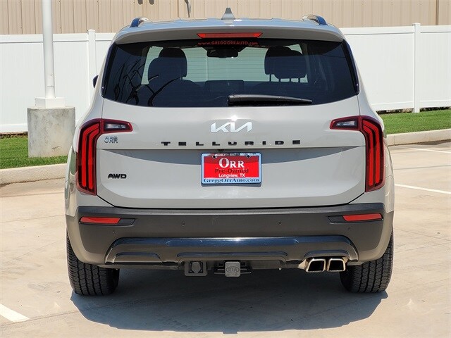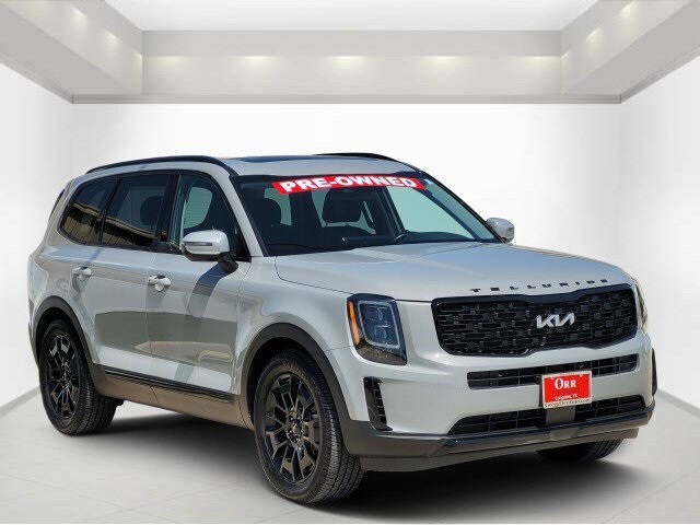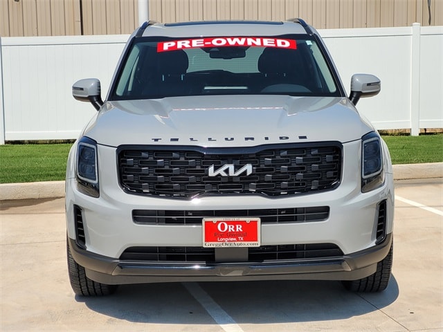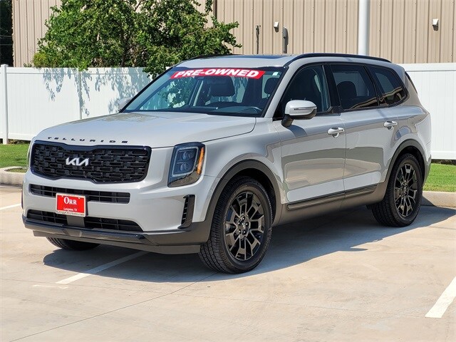 This 2022 Kia Telluride comes equipped with EX Premium Package (20" x 7.5" Machined Alloy Wheels, 2nd Row Captain Chairs, LED Headlamps, and Satin Chrome Roof Rails), Nightfall Edition Package (Black Finish Radiator Grille, Exclusive Black Headlight Bezels, Front & Rear Gloss Black Finish Bumper Skid Plates, Gloss Black Finish Exterior Emblems, Gloss Black Finish Front & Rear Door Garnish, Gloss Black Finish Roof Rails, and Wheels: 20" x 7.5" Exclusive Black Alloy), Towing Package (Self Leveling Rear Suspension and Tow Hitch w/Harness (TOF)), Navigation System, 3.648 Axle Ratio, 3rd row seats: split-bench, 4-Wheel Disc Brakes, 6 Speakers, ABS brakes, Air Conditioning, Alloy wheels, AM/FM radio: SiriusXM, Apple CarPlay & Android Auto, Auto-dimming Rear-View mirror, Automatic temperature control, Brake assist, Bumpers: body-color, Carpeted Floor Mats, Compass, Delay-off headlights, Driver door bin, Driver vanity mirror, Dual front impact airbags, Dual front side impact airbags, Electronic Stability Control, Emergency communication system: 911 Connect, Four wheel independent suspension, Front anti-roll bar, Front Bucket Seats, Front Center Armrest, Front dual zone A/C, Front reading lights, Fully automatic headlights, Heated & Ventilated Front Bucket Seats, Heated door mirrors, Heated front seats, Heated steering wheel, Illuminated entry, Knee airbag, Leather Seat Trim, Leather Shift Knob, Leather steering wheel, Low tire pressure warning, Occupant sensing airbag, Outside temperature display, Overhead airbag, Overhead console, Panic alarm, Passenger door bin, Passenger vanity mirror, Power door mirrors, Power driver seat, Power Liftgate, Power moonroof, Power passenger seat, Power steering, Power windows, Radio data system, Radio: AM/FM Display Audio System, Rear air conditioning, Rear anti-roll bar, Rear audio controls, Rear reading lights, Rear seat center armrest, Rear window defroster, Rear window wiper, Reclining 3rd row seat, Remote keyless entry, Roof rack: rails only, Security system, Smart Key w/ Push Button and Remote Start, Speed control, Speed-sensing steering, Split folding rear seat, Spoiler, Steering wheel mounted audio controls, Tachometer, Telescoping steering wheel, Tilt steering wheel, Traction control, Trip computer, Turn signal indicator mirrors, Variably intermittent wipers, Ventilated front seats, and Wheels: 18" x 7.5" Machined Alloy. CARFAX One-Owner. 20" x 7.5" Machined Alloy Wheels, 2nd Row Captain Chairs, Black Finish Radiator Grille, EX Premium Package, Exclusive Black Headlight Bezels, Front & Rear Gloss Black Finish Bumper Skid Plates, Gloss Black Finish Exterior Emblems, Gloss Black Finish Front & Rear Door Garnish, Gloss Black Finish Roof Rails, LED Headlamps, Navigation System, Nightfall Edition Package, Satin Chrome Roof Rails, Self Leveling Rear Suspension, Tow Hitch w/Harness (TOF), Towing Package, Wheels: 20" x 7.5" Exclusive Black Alloy.