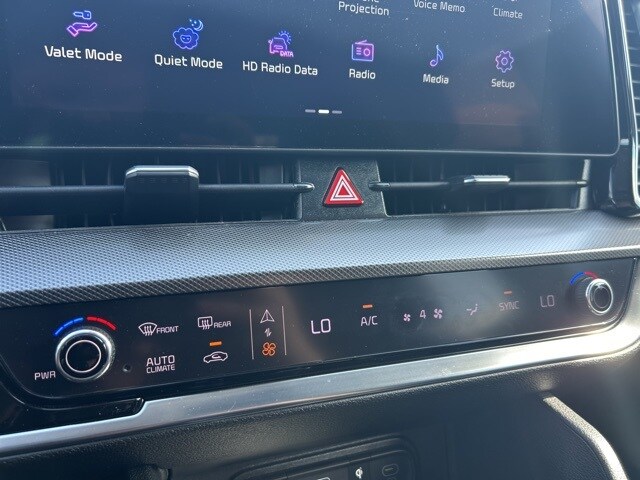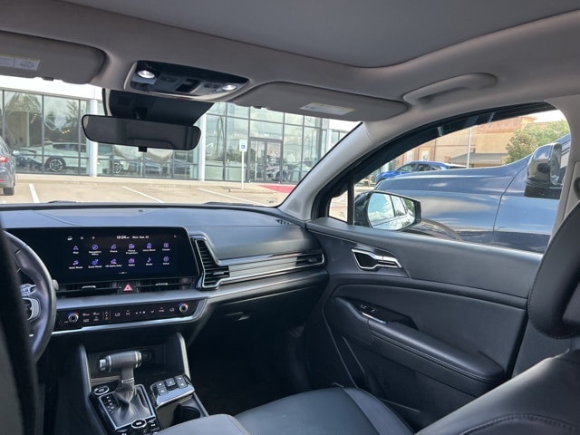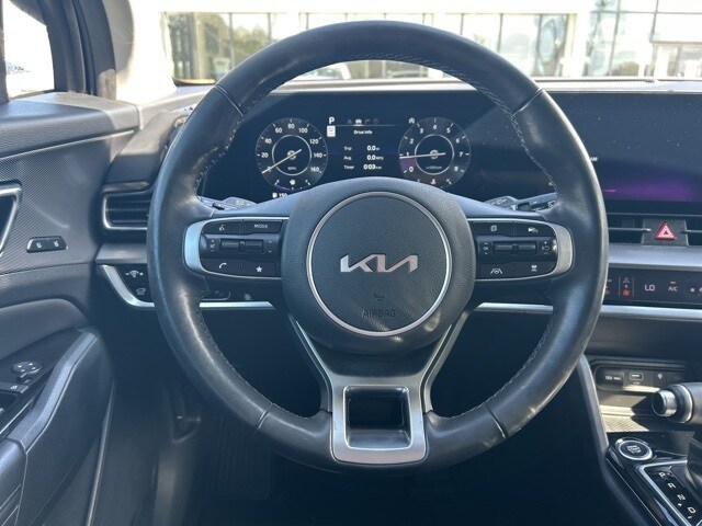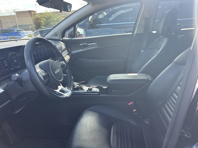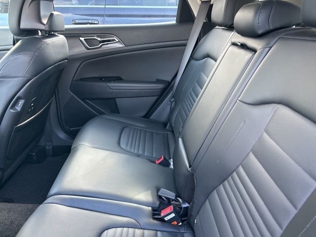 The 2023 Kia Sportage comes with the following features; 4-Wheel Disc Brakes, 8 Speakers, ABS brakes, Air Conditioning, Alloy wheels, AM/FM radio: SiriusXM, Apple CarPlay & Android Auto, Auto High-beam Headlights, Auto-dimming Rear-View mirror, Automatic temperature control, Axle Ratio: 3.648, Brake assist, Bumpers: body-color, Carpeted Floor Mats, Compass, Delay-off headlights, Driver door bin, Driver vanity mirror, Dual front impact airbags, Dual front side impact airbags, Electronic Stability Control, Emergency communication system, Four wheel independent suspension, Front anti-roll bar, Front Bucket Seats, Front Center Armrest, Front dual zone A/C, Front fog lights, Front reading lights, Fully automatic headlights, Garage door transmitter: HomeLink, harman/kardon® Speakers, Heated & Ventilated Front Bucket Seats, Heated door mirrors, Heated front seats, Heated steering wheel, Illuminated entry, Leather Shift Knob, Leather steering wheel, Low tire pressure warning, Memory seat, Navigation System, Occupant sensing airbag, Outside temperature display, Overhead airbag, Overhead console, Panic alarm, Passenger door bin, Passenger vanity mirror, Power door mirrors, Power driver seat, Power Liftgate, Power moonroof, Power passenger seat, Power steering, Power windows, Premium Leatherette Seat Trim, Radio: AM/FM/HD Audio System, Rain sensing wipers, Rear anti-roll bar, Rear reading lights, Rear seat center armrest, Rear window defroster, Rear window wiper, Remote keyless entry, Security system, Speed control, Speed-sensing steering, Split folding rear seat, Spoiler, Steering wheel mounted audio controls, Tachometer, Telescoping steering wheel, Tilt steering wheel, Traction control, Trip computer, Turn signal indicator mirrors, Variably intermittent wipers, Ventilated front seats, and Wheels: 19" Gloss Black Alloy.