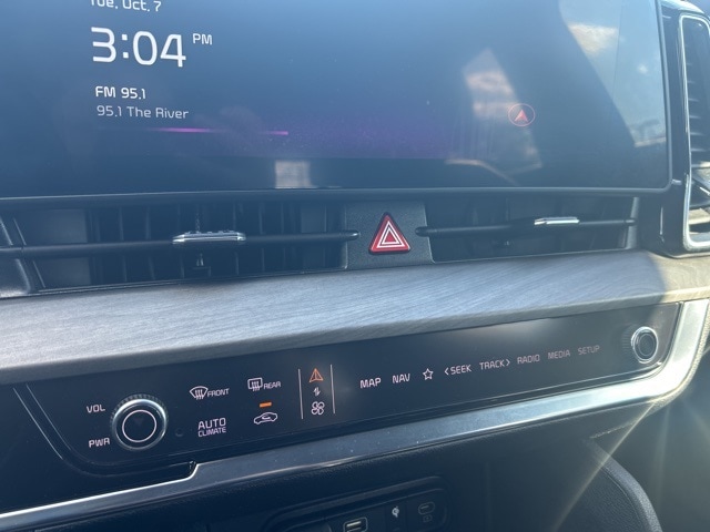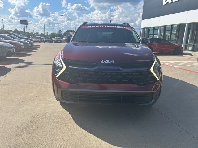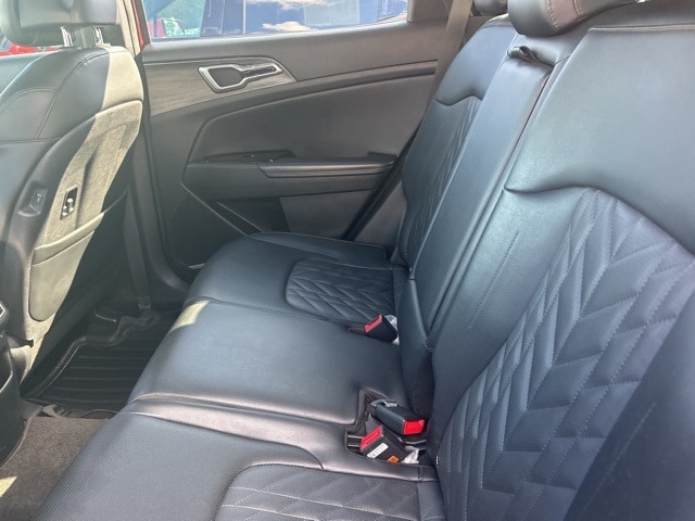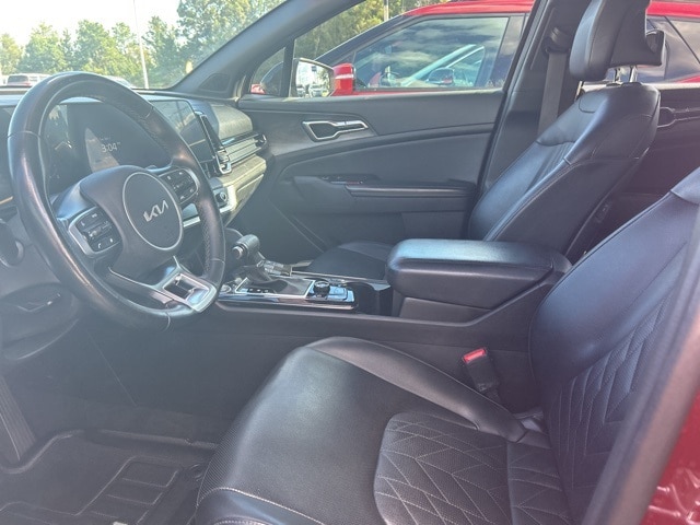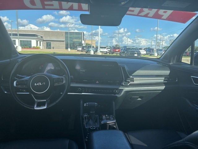 The 2023 Kia Sportage comes with the following features; X-Line Premium Package (LED Interior Lighting, Panoramic Sunroof, and Smart Power Liftgate), AWD, 4-Wheel Disc Brakes, 6 Speakers, ABS brakes, Air Conditioning, Alloy wheels, AM/FM radio: SiriusXM, Apple CarPlay & Android Auto, Auto High-beam Headlights, Automatic temperature control, Axle Ratio: 3.648, Brake assist, Bumpers: body-color, Carpet Floor Mats X-Line, Compass, Delay-off headlights, Driver door bin, Driver vanity mirror, Dual front impact airbags, Dual front side impact airbags, Electronic Stability Control, Emergency communication system, Four wheel independent suspension, Front anti-roll bar, Front Bucket Seats, Front Center Armrest, Front dual zone A/C, Fully automatic headlights, harman/kardon® Speakers, Heated door mirrors, Heated Front Bucket Seats, Heated front seats, Illuminated entry, Leather Shift Knob, Leather steering wheel, Low tire pressure warning, Navigation System, Occupant sensing airbag, Outside temperature display, Overhead airbag, Overhead console, Panic alarm, Passenger door bin, Passenger vanity mirror, Power door mirrors, Power driver seat, Power steering, Power windows, Premium Leatherette Seat Trim, Radio: AM/FM/HD Audio System, Rain sensing wipers, Rear anti-roll bar, Rear seat center armrest, Rear window defroster, Rear window wiper, Remote keyless entry, Security system, Speed control, Speed-sensing steering, Split folding rear seat, Spoiler, Steering wheel mounted audio controls, Tachometer, Telescoping steering wheel, Tilt steering wheel, Traction control, Trip computer, Turn signal indicator mirrors, Variably intermittent wipers, and Wheels: 19" Gloss Black Alloy. AWD.