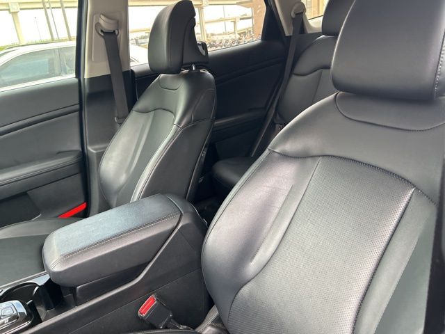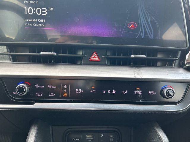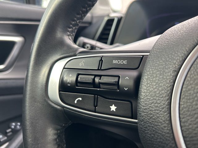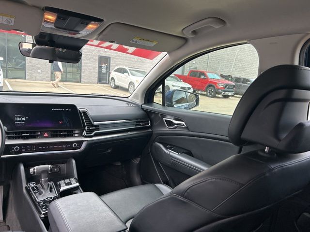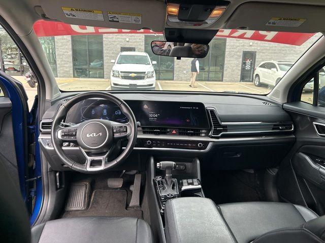The 2023 Kia Sportage comes with the following features; 4-Wheel Disc Brakes, 6 Speakers, ABS brakes, Air Conditioning, Alloy wheels, AM/FM radio: SiriusXM, Apple CarPlay & Android Auto, Auto High-beam Headlights, Automatic temperature control, Axle Ratio: 3.648, Brake assist, Bumpers: body-color, Cargo Net Hybrid w/o Audio, Carpeted Floor Mats, Compass, Delay-off headlights, Driver door bin, Driver vanity mirror, Dual front impact airbags, Dual front side impact airbags, Electronic Stability Control, Emergency communication system, Four wheel independent suspension, Front anti-roll bar, Front Bucket Seats, Front Center Armrest, Front dual zone A/C, Fully automatic headlights, Heated door mirrors, Heated Front Bucket Seats, Heated front seats, Illuminated entry, Leather Shift Knob, Leather steering wheel, Leatherette Seat Trim, Low tire pressure warning, Navigation System, Occupant sensing airbag, Outside temperature display, Overhead airbag, Overhead console, Panic alarm, Passenger door bin, Passenger vanity mirror, Power door mirrors, Power driver seat, Power steering, Power windows, Radio: AM/FM/HD Audio System, Rain sensing wipers, Rear anti-roll bar, Rear seat center armrest, Rear window defroster, Rear window wiper, Remote keyless entry, Security system, Speed control, Speed-sensing steering, Split folding rear seat, Spoiler, Steering wheel mounted audio controls, Tachometer, Telescoping steering wheel, Tilt steering wheel, Traction control, Trip computer, Turn signal indicator mirrors, Variably intermittent wipers, and Wheels: 18" Machine Finish Alloy.
