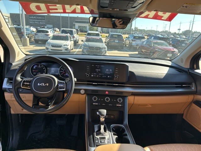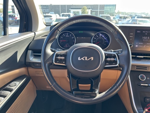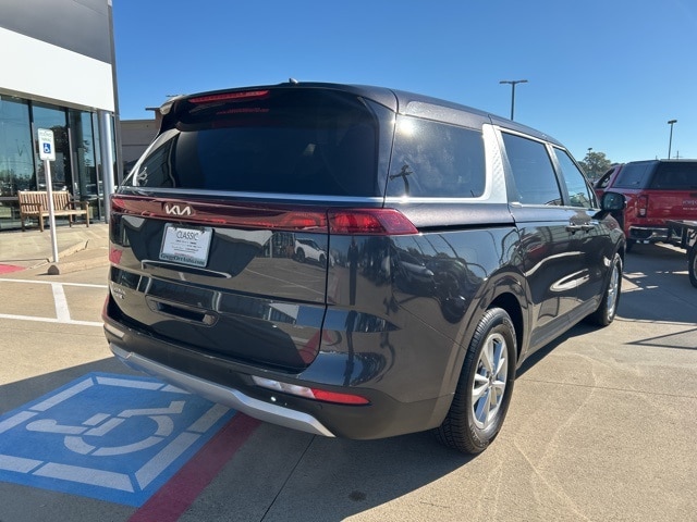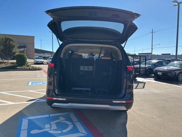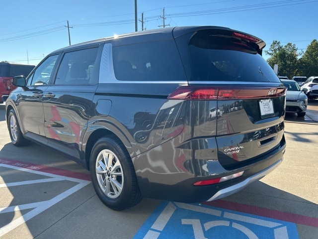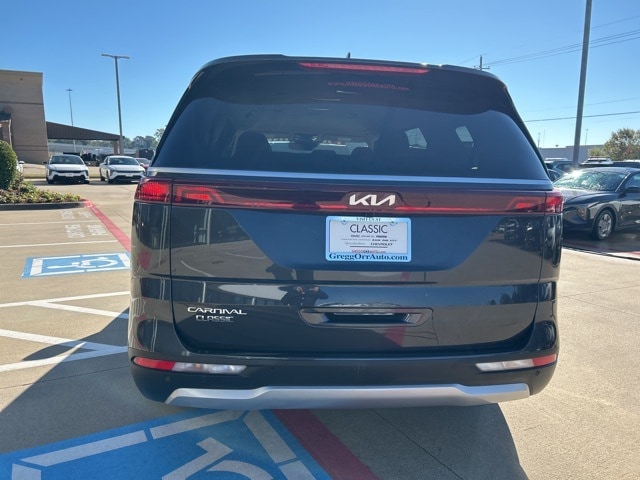 The 2024 Kia Carnival comes with the following features; 3.51 Axle Ratio, 3rd row seats: split-bench, 4-Wheel Disc Brakes, 6 Speakers, ABS brakes, Air Conditioning, Alloy wheels, AM/FM radio, Apple CarPlay & Android Auto, Auto High-beam Headlights, Brake assist, Bumpers: body-color, Cloth Seat Trim, Delay-off headlights, Driver door bin, Driver vanity mirror, Dual front impact airbags, Dual front side impact airbags, Electronic Stability Control, Four wheel independent suspension, Front anti-roll bar, Front Bucket Seats, Front Center Armrest, Front reading lights, Fully automatic headlights, Heated door mirrors, Illuminated entry, Knee airbag, Leather Shift Knob, Low tire pressure warning, Occupant sensing airbag, Outside temperature display, Overhead airbag, Overhead console, Panic alarm, Passenger door bin, Passenger vanity mirror, Power door mirrors, Power steering, Power windows, Radio: AM/FM Audio System, Rear air conditioning, Rear anti-roll bar, Rear reading lights, Rear window defroster, Rear window wiper, Reclining 3rd row seat, Remote keyless entry, Security system, Speed control, Speed-sensing steering, Split folding rear seat, Spoiler, Steering wheel mounted audio controls, Tachometer, Telescoping steering wheel, Tilt steering wheel, Traction control, Trip computer, Turn signal indicator mirrors, Variably intermittent wipers, and Wheels: 6.5J x 17" Clear Silver Painted Alloy.