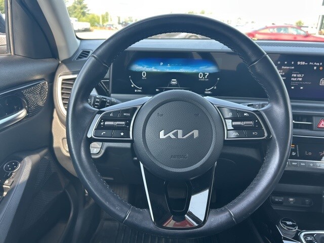 The 2024 Kia Seltos comes with the following features; 3.510 Axle Ratio, 4-Wheel Disc Brakes, 6 Speakers, ABS brakes, Air Conditioning, Alloy wheels, AM/FM radio: SiriusXM, Apple CarPlay & Android Auto, Auto High-beam Headlights, Automatic temperature control, Brake assist, Bumpers: body-color, Carpet Floor Mats, Cloth & Sofino Premium Leatherette Seat Trim, Delay-off headlights, Driver door bin, Driver vanity mirror, Dual front impact airbags, Dual front side impact airbags, Electronic Stability Control, Emergency communication system: 911 Connect, Exterior Parking Camera Rear, Four wheel independent suspension, Front anti-roll bar, Front Bucket Seats, Front Center Armrest, Front fog lights, Front reading lights, Fully automatic headlights, Heated door mirrors, Heated Front Bucket Seats, Heated front seats, Illuminated entry, Leather Shift Knob, Leather steering wheel, Low tire pressure warning, Navigation System, Occupant sensing airbag, Outside temperature display, Overhead airbag, Overhead console, Panic alarm, Passenger door bin, Passenger vanity mirror, Power door mirrors, Power steering, Power windows, Radio: AM/FM/HD/Satellite Display System w/Navigation, Rear seat center armrest, Rear window defroster, Rear window wiper, Remote keyless entry, Security system, Speed control, Speed-sensing steering, Split folding rear seat, Spoiler, Steering wheel mounted audio controls, Tachometer, Telescoping steering wheel, Tilt steering wheel, Traction control, Trip computer, Turn signal indicator mirrors, Variably intermittent wipers, and Wheels: 18" Alloy w/Gloss Black.