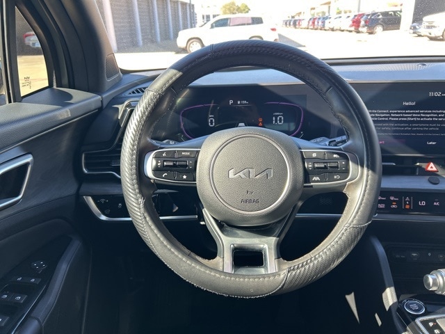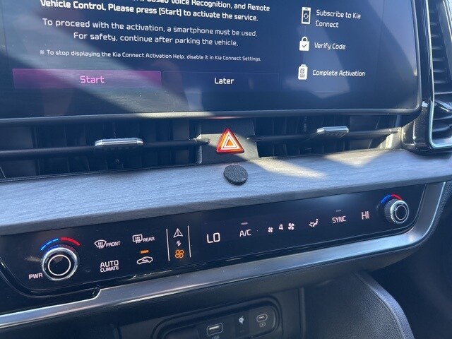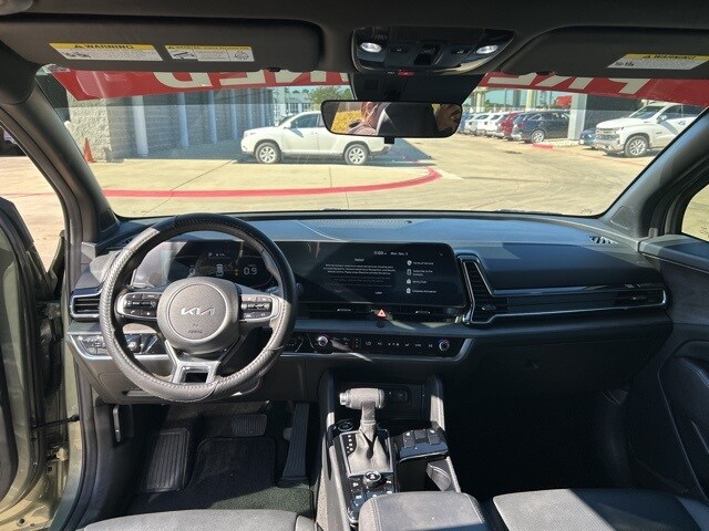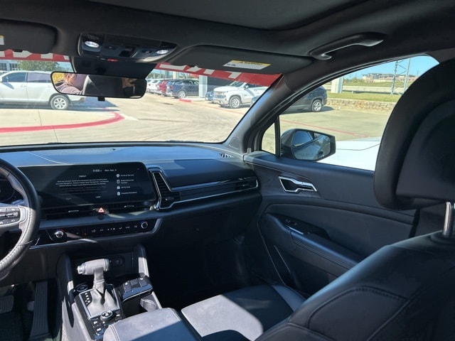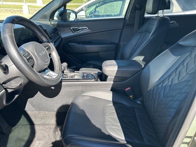 The 2024 Kia Sportage comes with the following features; X-Line Premium Package (LED Interior Lighting, Panoramic Sunroof, and Smart Power Liftgate), AWD, 4-Wheel Disc Brakes, 6 Speakers, ABS brakes, Air Conditioning, Alloy wheels, AM/FM radio: SiriusXM, Apple CarPlay & Android Auto, Auto High-beam Headlights, Automatic temperature control, Axle Ratio: 3.648, Brake assist, Bumpers: body-color, Cargo Mat, Cargo Mat w/Seatback Protection, Cargo Net Hybrid w/o Audio, Carpet Floor Mats X-Line, Compass, Cross Bars X-Line, Delay-off headlights, Driver door bin, Driver vanity mirror, Dual front impact airbags, Dual front side impact airbags, Electronic Stability Control, Emergency communication system, Four wheel independent suspension, Front anti-roll bar, Front Bucket Seats, Front Center Armrest, Front dual zone A/C, Fully automatic headlights, Heated door mirrors, Heated Front Bucket Seats, Heated front seats, Illuminated entry, Leather steering wheel, Low tire pressure warning, Navigation System, Occupant sensing airbag, Outside temperature display, Overhead airbag, Overhead console, Panic alarm, Passenger door bin, Passenger vanity mirror, Power door mirrors, Power driver seat, Power steering, Power windows, Premium Leatherette Seat Trim, Radio: AM/FM/HD Audio System, Rain sensing wipers, Rear anti-roll bar, Rear seat center armrest, Rear side impact airbag, Rear window defroster, Rear window wiper, Remote keyless entry, Security system, Speed control, Speed-sensing steering, Split folding rear seat, Spoiler, Steering wheel mounted audio controls, Tachometer, Telescoping steering wheel, Tilt steering wheel, Traction control, Trip computer, Turn signal indicator mirrors, Variably intermittent wipers, and Wheels: 19" Gloss Black Alloy. AWD.