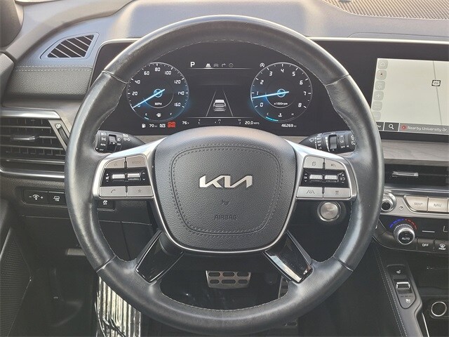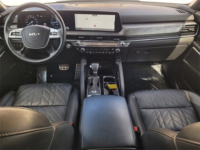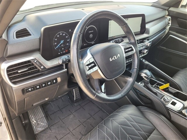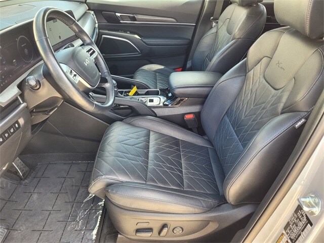 This 2024 Kia Telluride comes equipped with Navigation System, 10 Speakers, 3.648 Axle Ratio, 3rd row seats: split-bench, 4-Wheel Disc Brakes, ABS brakes, Air Conditioning, Alloy wheels, AM/FM radio: SiriusXM, Apple CarPlay & Android Auto, Auto High-beam Headlights, Auto-dimming Rear-View mirror, Auto-leveling suspension, Automatic temperature control, Brake assist, Bumpers: body-color, Carpet Floor Mats, Compass, Delay-off headlights, Driver door bin, Driver vanity mirror, Dual front impact airbags, Dual front side impact airbags, Electronic Stability Control, Emergency communication system: 911 Connect, Exterior Parking Camera Rear, Four wheel independent suspension, Front anti-roll bar, Front Bucket Seats, Front Center Armrest, Front dual zone A/C, Front fog lights, Front reading lights, Fully automatic headlights, Garage door transmitter: HomeLink, harman/kardon® Speakers, Heated & Ventilated Front Bucket Seats, Heated door mirrors, Heated front seats, Heated steering wheel, Illuminated entry, Knee airbag, Leather Seat Trim, Leather Shift Knob, Leather steering wheel, Low tire pressure warning, Memory seat, Occupant sensing airbag, Outside temperature display, Overhead airbag, Overhead console, Panic alarm, Passenger door bin, Passenger vanity mirror, Power door mirrors, Power driver seat, Power Liftgate, Power moonroof, Power passenger seat, Power steering, Power windows, Radio data system, Radio: AM/FM Harman Kardon Audio System, Rear air conditioning, Rear anti-roll bar, Rear audio controls, Rear reading lights, Rear side impact airbag, Rear window defroster, Rear window wiper, Reclining 3rd row seat, Remote keyless entry, Roof rack: rails only, Security system, Smart Key w/ Push Button and Remote Start, Speed control, Speed-sensing steering, Split folding rear seat, Spoiler, Steering wheel mounted audio controls, Tachometer, Telescoping steering wheel, Tilt steering wheel, Traction control, Trip computer, Turn signal indicator mirrors, Variably intermittent wipers, Ventilated front seats, and Wheels: 18" x 7.5" Black Finish X-PRO Exclusive. CARFAX One-Owner. Clean CARFAX. One Owner Carfax, Navigation System.