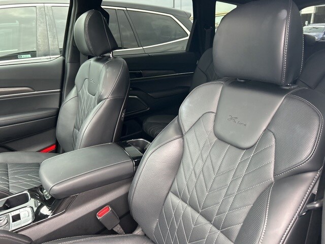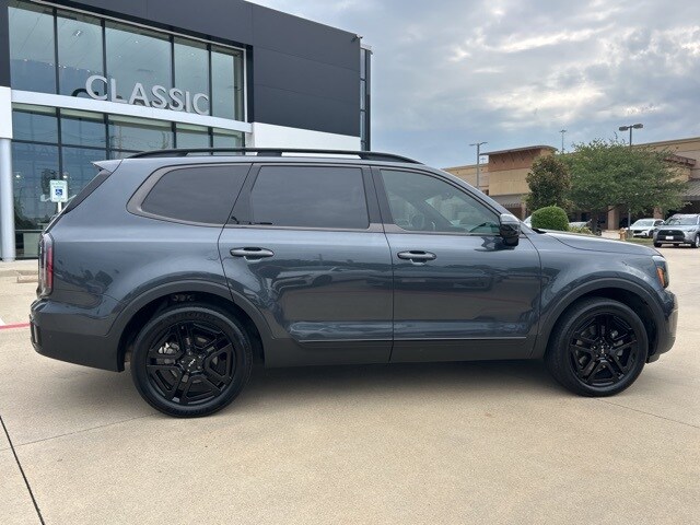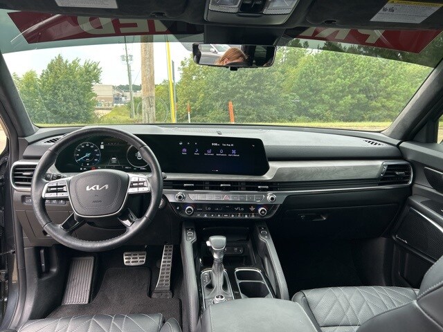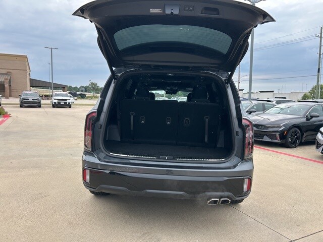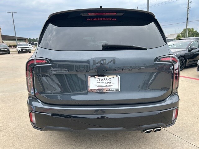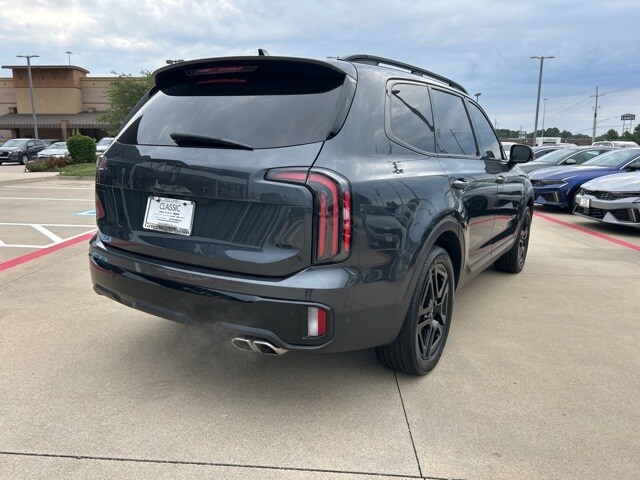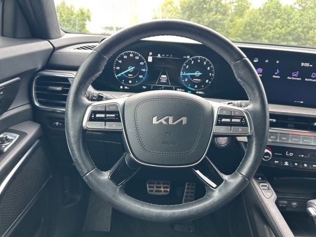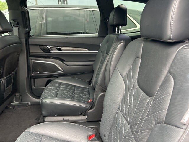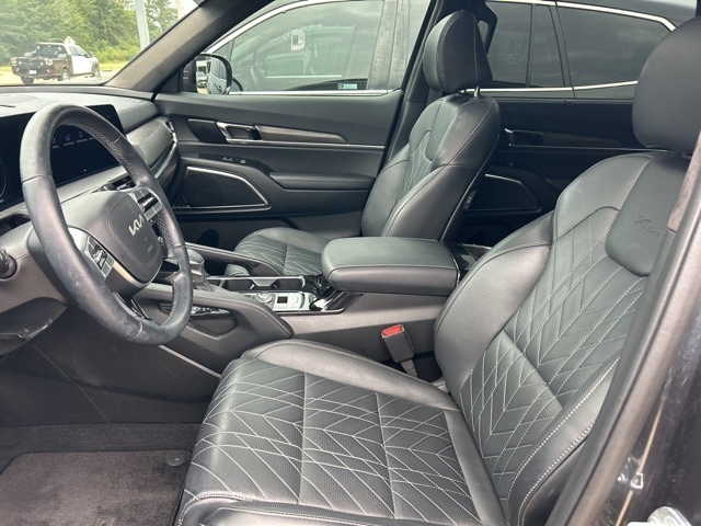 The 2024 Kia Telluride comes with the following features; 10 Speakers, 3.648 Axle Ratio, 3rd row seats: split-bench, 4-Wheel Disc Brakes, ABS brakes, Air Conditioning, Alloy wheels, AM/FM radio: SiriusXM, Apple CarPlay & Android Auto, Auto High-beam Headlights, Auto-dimming Rear-View mirror, Auto-leveling suspension, Automatic temperature control, Brake assist, Bumpers: body-color, Cargo Cover, Cargo Tray Seat Back, Carpet Floor Mats, Compass, Delay-off headlights, Driver door bin, Driver vanity mirror, Dual front impact airbags, Dual front side impact airbags, Electronic Stability Control, Emergency communication system: 911 Connect, Exterior Parking Camera Rear, Four wheel independent suspension, Front anti-roll bar, Front Bucket Seats, Front Center Armrest, Front dual zone A/C, Front fog lights, Front reading lights, Fully automatic headlights, Garage door transmitter: HomeLink, harman/kardon® Speakers, Heads-Up Display, Heated & Ventilated Front Bucket Seats, Heated door mirrors, Heated front seats, Heated rear seats, Heated steering wheel, Hybrid Cargo Net, Illuminated entry, Knee airbag, Leather Shift Knob, Leather steering wheel, Low tire pressure warning, Memory seat, Navigation System, Occupant sensing airbag, Outside temperature display, Overhead airbag, Overhead console, Panic alarm, Passenger door bin, Passenger vanity mirror, Power door mirrors, Power driver seat, Power Liftgate, Power moonroof, Power passenger seat, Power steering, Power windows, Premium Nappa Leather Seat Trim, Radio data system, Radio: AM/FM Harman Kardon Audio System, Rain sensing wipers, Rear air conditioning, Rear anti-roll bar, Rear audio controls, Rear reading lights, Rear side impact airbag, Rear window defroster, Rear window wiper, Reclining 3rd row seat, Remote keyless entry, Roof rack: rails only, Security system, Smart Key w/ Push Button and Remote Start, Speed control, Speed-sensing steering, Split folding rear seat, Spoiler, Steering wheel mounted audio controls, Tachometer, Telescoping steering wheel, Tilt steering wheel, Traction control, Trip computer, Turn signal indicator mirrors, Variably intermittent wipers, Ventilated front seats, Ventilated rear seats, and Wheels: 20" x 7.5" Black Finish X-LINE Exclusive.