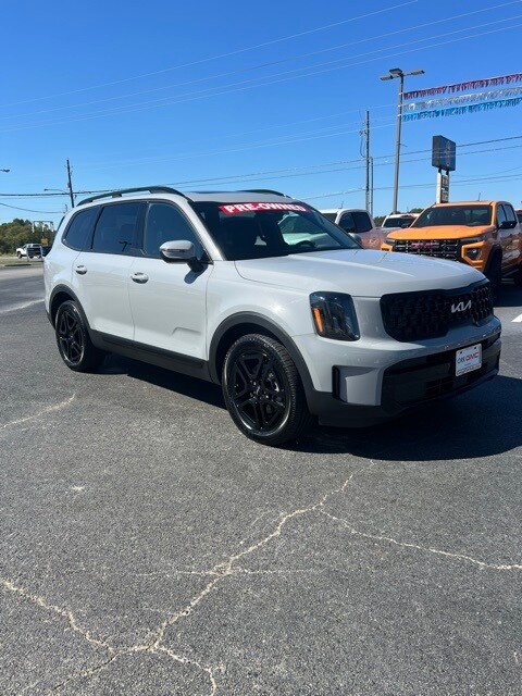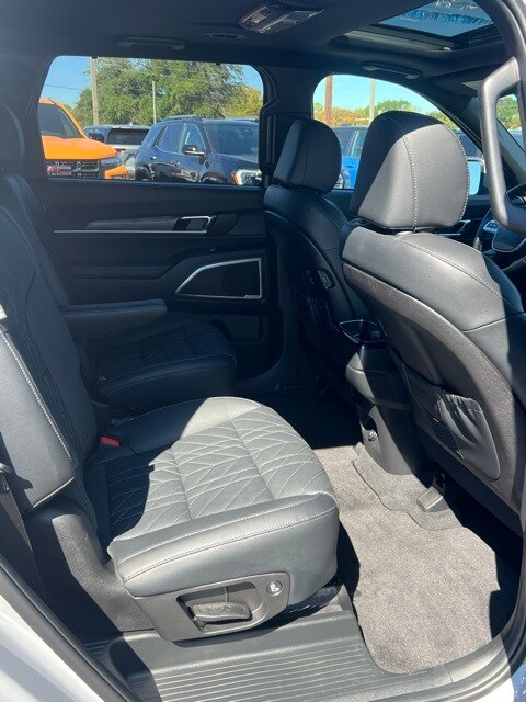 This 2024 Kia Telluride comes equipped with 3.648 Axle Ratio, 3rd row seats: split-bench, 4-Wheel Disc Brakes, 6 Speakers, ABS brakes, Air Conditioning, Alloy wheels, AM/FM radio: SiriusXM, Apple CarPlay & Android Auto, Auto High-beam Headlights, Auto-dimming Rear-View mirror, Auto-leveling suspension, Automatic temperature control, Brake assist, Bumpers: body-color, Cargo Cover, Cargo Tray Seat Back, Carpet Floor Mats, Compass, Cross Bars X-Line, Delay-off headlights, Driver door bin, Driver vanity mirror, Dual front impact airbags, Dual front side impact airbags, Electronic Stability Control, Emergency communication system: 911 Connect, Exterior Parking Camera Rear, Four wheel independent suspension, Front anti-roll bar, Front Bucket Seats, Front Center Armrest, Front dual zone A/C, Front reading lights, Fully automatic headlights, Heated & Ventilated Front Bucket Seats, Heated door mirrors, Heated front seats, Heated steering wheel, Hybrid Cargo Net, Illuminated entry, Knee airbag, Leather Seat Trim, Leather Shift Knob, Leather steering wheel, Low tire pressure warning, Navigation System, Occupant sensing airbag, Outside temperature display, Overhead airbag, Overhead console, Panic alarm, Passenger door bin, Passenger vanity mirror, Power door mirrors, Power driver seat, Power Liftgate, Power moonroof, Power passenger seat, Power steering, Power windows, Radio data system, Radio: AM/FM Display Audio System, Rear air conditioning, Rear anti-roll bar, Rear audio controls, Rear reading lights, Rear side impact airbag, Rear window defroster, Rear window wiper, Reclining 3rd row seat, Remote keyless entry, Roof rack: rails only, Security system, Smart Key w/ Push Button and Remote Start, Speed control, Speed-sensing steering, Split folding rear seat, Spoiler, Steering wheel mounted audio controls, Tachometer, Telescoping steering wheel, Tilt steering wheel, Traction control, Trip computer, Turn signal indicator mirrors, Variably intermittent wipers, Ventilated front seats, and Wheels: 20" x 7.5" Black Finish X-LINE Exclusive. Clean CARFAX.