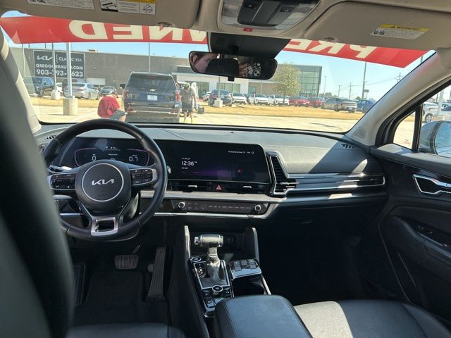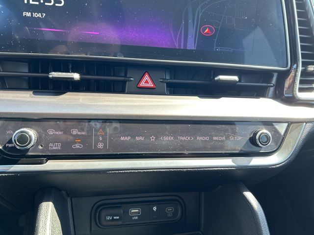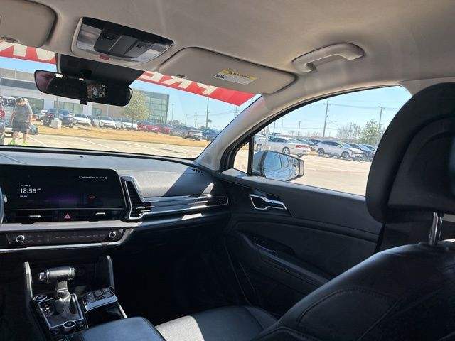 The 2025 Kia Sportage comes with the following features; 4-Wheel Disc Brakes, 6 Speakers, ABS brakes, Air Conditioning, Alloy wheels, AM/FM radio: SiriusXM, Apple CarPlay & Android Auto, Auto High-beam Headlights, Automatic temperature control, Brake assist, Bumpers: body-color, Carpeted Floor Mats, Compass, Delay-off headlights, Driver door bin, Driver vanity mirror, Dual front impact airbags, Dual front side impact airbags, Electronic Stability Control, Emergency communication system, Four wheel independent suspension, Front anti-roll bar, Front Bucket Seats, Front Center Armrest, Front dual zone A/C, Fully automatic headlights, Heated door mirrors, Heated Front Bucket Seats, Heated front seats, Illuminated entry, Leather Shift Knob, Leather steering wheel, Leatherette Seat Trim, Low tire pressure warning, Navigation System, Occupant sensing airbag, Outside temperature display, Overhead airbag, Overhead console, Panic alarm, Passenger door bin, Passenger vanity mirror, Power door mirrors, Power driver seat, Power steering, Power windows, Radio: AM/FM/HD Audio System, Rain sensing wipers, Rear anti-roll bar, Rear seat center armrest, Rear side impact airbag, Rear window defroster, Rear window wiper, Remote keyless entry, Security system, Speed control, Speed-sensing steering, Split folding rear seat, Spoiler, Steering wheel mounted audio controls, Tachometer, Telescoping steering wheel, Tilt steering wheel, Traction control, Trip computer, Turn signal indicator mirrors, Variably intermittent wipers, and Wheels: 18" x 7.5J Machined Alloy.