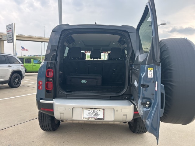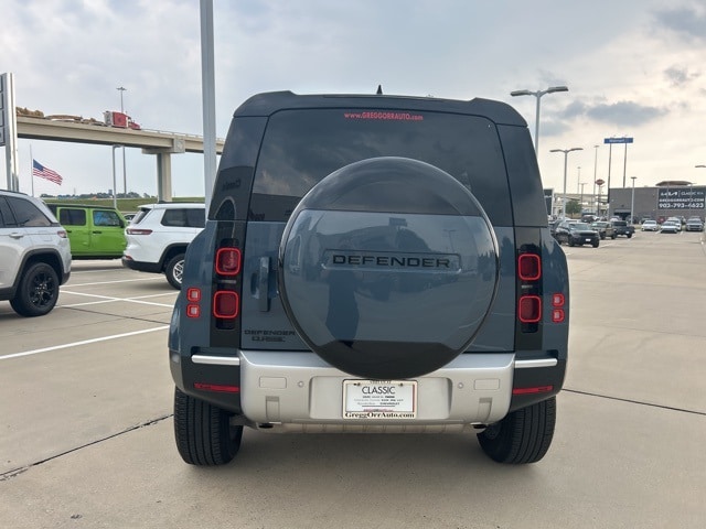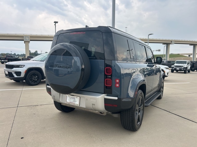 Clean CARFAX. Classic CDJR in Texarkana is proud to offer this fantastic-looking 2024 Land Rover Defender 110 in Tasman Blue Metallic. This 2024 Land Rover Defender 110 comes with the following features; 11 Speakers, 12-Way Heated Electric Memory Front Seats, 4-Wheel Disc Brakes, 4.1 Axle Ratio, ABS brakes, Air Conditioning, Alloy wheels, AM/FM radio: SiriusXM, Apple CarPlay & Android Auto, Auto High-beam Headlights, Auto tilt-away steering wheel, Auto-dimming door mirrors, Auto-dimming Rear-View mirror, Automatic temperature control, Brake assist, Bumpers: body-color, Compass, Delay-off headlights, Driver door bin, Driver vanity mirror, Dual front impact airbags, Dual front side impact airbags, Electronic Stability Control, Exterior Parking Camera Rear, Four wheel independent suspension, Front anti-roll bar, Front Bucket Seats, Front Center Armrest, Front dual zone A/C, Front fog lights, Front reading lights, Fully automatic headlights, Garage door transmitter: HomeLink, Grained Leather Seat Trim, Heated door mirrors, Heated front seats, Heated steering wheel, Illuminated entry, Leather Shift Knob, Leather steering wheel, Low tire pressure warning, Memory seat, Navigation system: Connected Navigation PIVI Pro, Occupant sensing airbag, Outside temperature display, Overhead airbag, Overhead console, Panic alarm, Passenger door bin, Passenger vanity mirror, Power door mirrors, Power driver seat, Power moonroof, Power passenger seat, Power steering, Power windows, Radio data system, Radio: 400W 11 Speaker Meridian Sound System, Rain sensing wipers, Rear anti-roll bar, Rear fog lights, Rear reading lights, Rear seat center armrest, Rear window defroster, Rear window wiper, Remote keyless entry, Security system, Speed control, Speed-sensing steering, Speed-Sensitive Wipers, Split folding rear seat, Steering wheel memory, Steering wheel mounted audio controls, Tachometer, Telescoping steering wheel, Tilt steering wheel, Traction control, Trip computer, Variably intermittent wipers, Weather band radio, and Wheels: 19" Gloss Sparkle Silver Style 6010.