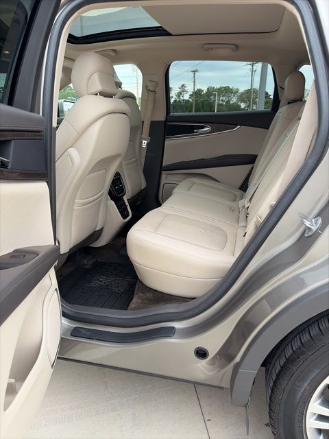 This 2017 Lincoln MKX comes equipped with Cargo Accessories Package (Durable Lightweight Rubber Cargo Mat and Rear Bumper Anti-Scratch Pad/Load Protector), Cargo Utility Package (Interior Cargo Cover, Molded Plastic Storage Bins, Power Converter 110V Outlet, and Rear Cargo Management System), Enhanced Security Package (Lockable Interior Storage), Equipment Group 102A (8" LCD Touchscreen and Compass Display), GVWR: 5,440 lbs Payload Package, Lincoln MKX Climate Package (Auto High-Beam Headlamps, Automatic Rain-Sensing Wipers, Heated Rear Seats, Heated Steering Wheel, and Windshield Wiper De-Icer), 10 Speakers, 22 Way Adjustable Front Drive/Passenger Seat, 3.39 Axle Ratio, 4-Wheel Disc Brakes, ABS brakes, Adaptive suspension, Air Conditioning, Alloy wheels, AM/FM radio: SiriusXM, AM/FM Stereo w/Single CD, Auto-dimming door mirrors, Auto-dimming Rear-View mirror, Automatic temperature control, Brake assist, Bumpers: body-color, CD player, Compass, Delay-off headlights, Driver door bin, Driver vanity mirror, Dual front impact airbags, Dual front side impact airbags, Electronic Stability Control, Emergency communication system: SYNC 3 911 Assist, Exterior Parking Camera Rear, Four wheel independent suspension, Front anti-roll bar, Front Bucket Seats, Front Center Armrest, Front dual zone A/C, Front fog lights, Front License Plate Bracket, Front reading lights, Fully automatic headlights, Garage door transmitter: HomeLink, Heated door mirrors, Heated front seats, High-Intensity Discharge Headlights, Illuminated entry, Knee airbag, Low tire pressure warning, Memory seat, Navigation System, Occupant sensing airbag, Outside temperature display, Overhead airbag, Overhead console, Panic alarm, Passenger door bin, Passenger vanity mirror, Power door mirrors, Power driver seat, Power Liftgate, Power moonroof, Power passenger seat, Power steering, Power windows, Prem Lthr-Trimmed Heated/Cooled Bucket Seats (BE), Radio data system, Rear anti-roll bar, Rear Parking Sensors, Rear reading lights, Rear seat center armrest, Rear window defroster, Rear window wiper, Remote keyless entry, Satin Roof Rack Side Rails Without Crossbars, Security system, Speed control, Speed-Sensitive Wipers, Split folding rear seat, Spoiler, Steering wheel memory, Steering wheel mounted A/C controls, Steering wheel mounted audio controls, SYNC 3, Tachometer, Telescoping steering wheel, Tilt steering wheel, Traction control, Trip computer, Turn signal indicator mirrors, Variably intermittent wipers, Ventilated front seats, and Wheels: 20" Premium Painted Aluminum w/20 Spokes.