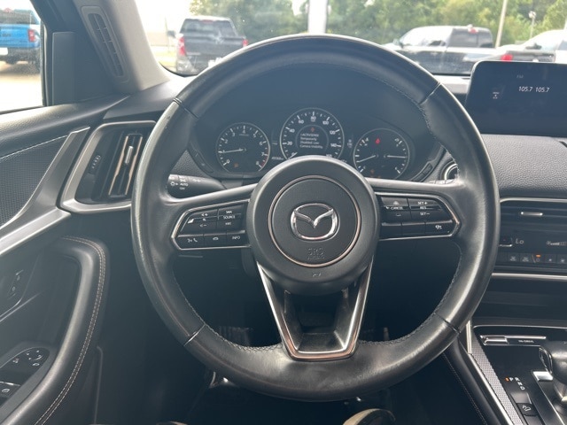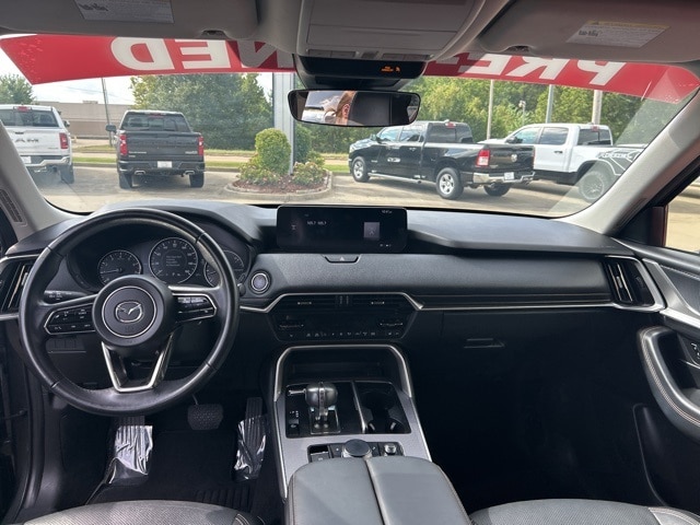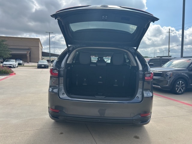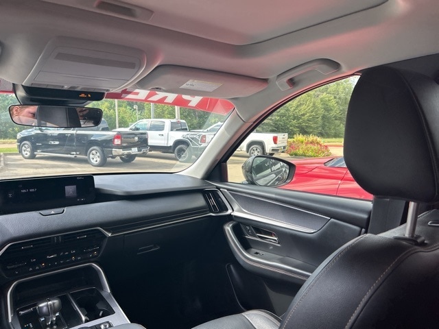The 2024 Mazda CX-90 comes with the following features; 3.692 Axle Ratio, 3rd row seats: bench, 4-Wheel Disc Brakes, 8 Speakers, ABS brakes, Air Conditioning, Alloy wheels, AM/FM radio, AppLink/Apple CarPlay and Android Auto, Auto High-beam Headlights, Automatic temperature control, Brake assist, Bumpers: body-color, Compass, Delay-off headlights, Driver door bin, Driver vanity mirror, Dual front impact airbags, Dual front side impact airbags, E911 Automatic Emergency Notification, Electronic Stability Control, Emergency communication system: MAZDA CONNECT, Exterior Parking Camera Rear, Four wheel independent suspension, Front anti-roll bar, Front Bucket Seats, Front Center Armrest w/Storage, Front dual zone A/C, Front reading lights, Fully automatic headlights, Heads-Up Display, Heated door mirrors, Heated Front Bucket Seats, Heated front seats, Illuminated entry, Infotainment System Voice Command, Knee airbag, Leather Seat Trim, Leather Shift Knob, Leather steering wheel, Low tire pressure warning, Machine Gray Metallic Paint Charge, Mazda Connected Services, Occupant sensing airbag, Outside temperature display, Overhead airbag, Overhead console, Pandora Internet Radio Integration, Panic alarm, Passenger door bin, Passenger vanity mirror, Power door mirrors, Power driver seat, Power Liftgate, Power moonroof, Power passenger seat, Power steering, Power windows, Radio Broadcast Data System Program Information, Radio data system, Radio: AM/FM Sound System, Rain sensing wipers, Rear air conditioning, Rear anti-roll bar, Rear reading lights, Rear seat center armrest, Rear window defroster, Rear window wiper, Remote keyless entry, SMS Text Msg Audio Delivery & Reply, Speed control, Speed-sensing steering, Split folding rear seat, Spoiler, Steering wheel mounted audio controls, Tachometer, Telescoping steering wheel, Tilt steering wheel, Traction control, Trip computer, Turn signal indicator mirrors, Variably intermittent wipers, and Wheels: 19" x 8.5J Aluminum Alloy.