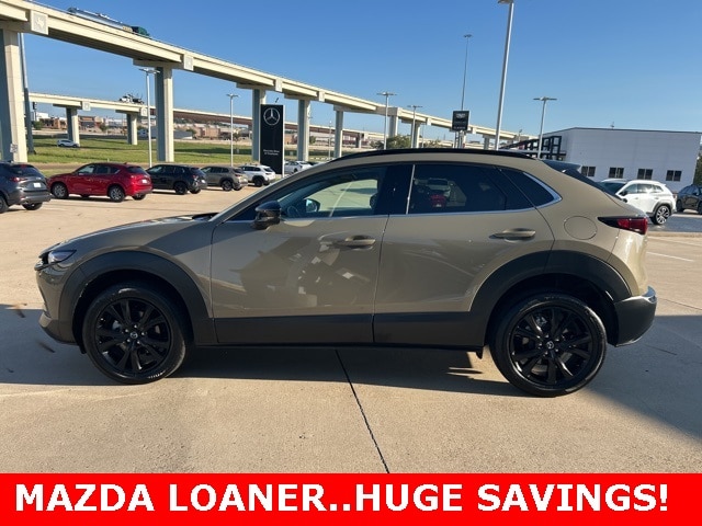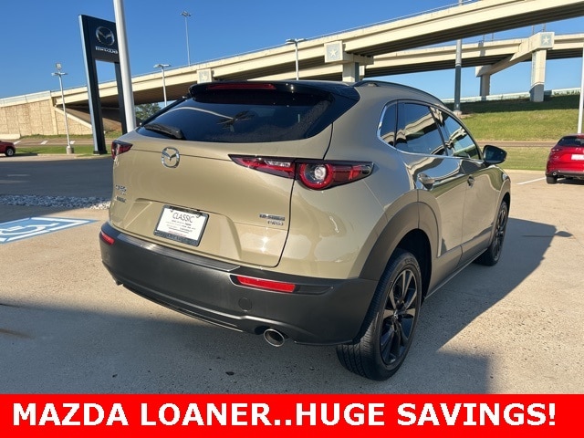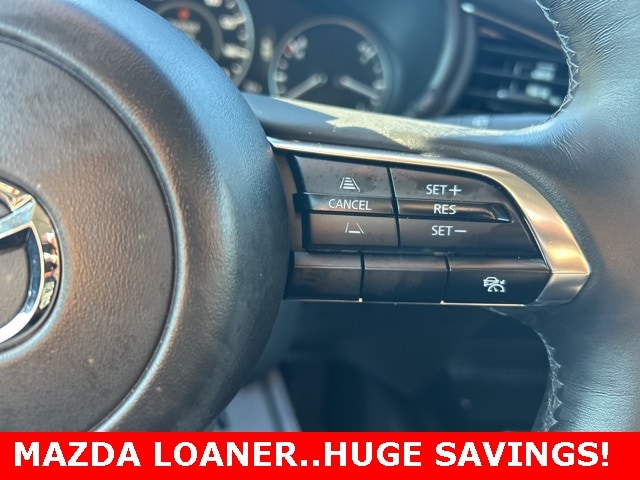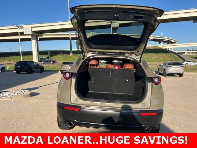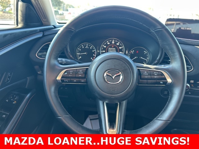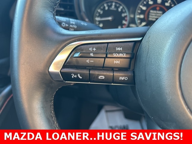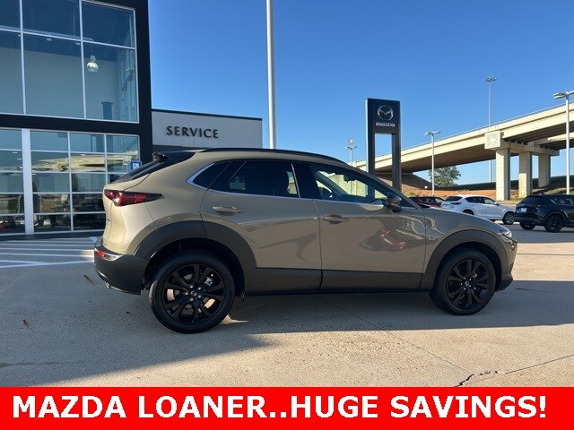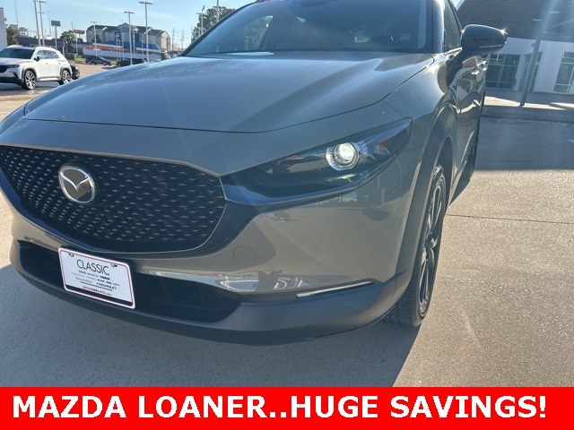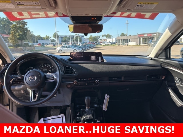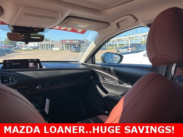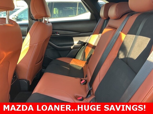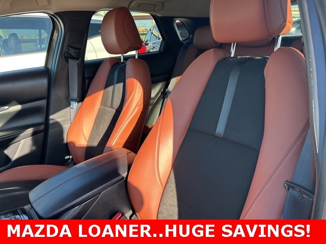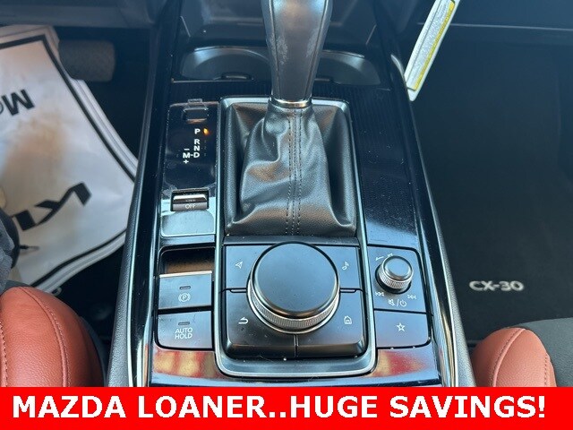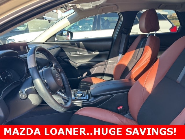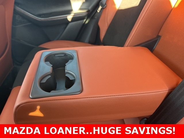 This 2025 Mazda CX-30 comes equipped with the following features 4-Wheel Disc Brakes, 8 Speakers, ABS brakes, Air Conditioning, Alloy wheels, AM/FM radio, AppLink/Apple CarPlay and Android Auto, Auto High-beam Headlights, Automatic temperature control, Black Lug Nuts & Black Wheel Locks, Black Mazda Logo Slimline License Plate Frame, Brake assist, Bumpers: body-color, Cargo Tray, Compass, Delay-off headlights, Driver door bin, Driver vanity mirror, Dual front impact airbags, Dual front side impact airbags, Electronic Stability Control, Emergency communication system: Mazda Connected Services (3-year trial subscription included), Exterior Parking Camera Rear, Front anti-roll bar, Front Bucket Seats, Front Center Armrest, Front dual zone A/C, Front reading lights, Front wheel independent suspension, Fully automatic headlights, Heated door mirrors, Heated Front Bucket Seats, Heated front seats, Illuminated entry, Knee airbag, Leather Shift Knob, Leather steering wheel, Leatherette Seat Trim, Low tire pressure warning, MAZDA CONNECT Infotainment System, Memory seat, Occupant sensing airbag, Outside temperature display, Overhead airbag, Overhead console, Panic alarm, Passenger door bin, Passenger vanity mirror, Power door mirrors, Power driver seat, Power moonroof, Power steering, Power windows, Radio data system, Radio: AM/FM/HD Audio System, Rain sensing wipers, Rear seat center armrest, Rear side impact airbag, Rear window defroster, Rear window wiper, Remote keyless entry, Speed control, Speed-sensing steering, Split folding rear seat, Spoiler, Stainless Steel Rear Bumper Guard, Steering wheel mounted audio controls, Tachometer, Telescoping steering wheel, Tilt steering wheel, Traction control, Trip computer, Turn signal indicator mirrors, Variably intermittent wipers, and Wheels: 18" x 7J Aluminum Alloy. Clean CARFAX. 2025 Mazda CX-30 2.5 Carbon Turbo AWD 2.5L I4