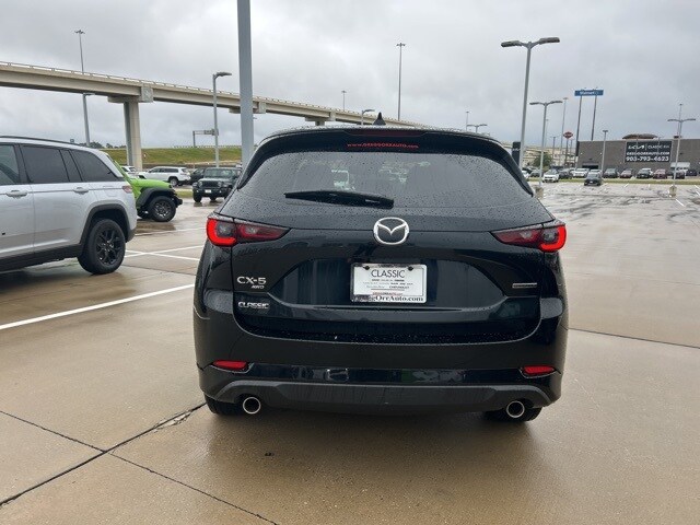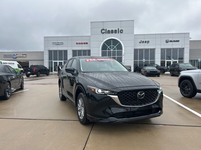 CARFAX One-Owner. Classic CDJR in Texarkana is proud to offer this superb-looking 2025 Mazda CX-5 in Jet Black. This 2025 Mazda CX-5 comes with the following features; 4-Wheel Disc Brakes, 6 Speakers, ABS brakes, Air Conditioning, Alloy wheels, AM/FM radio, AppLink/Apple CarPlay and Android Auto, Auto High-beam Headlights, Auto-dimming Rear-View mirror, Automatic temperature control, Brake assist, Bumpers: body-color, Delay-off headlights, Driver door bin, Driver vanity mirror, Dual front impact airbags, Dual front side impact airbags, E911 Automatic Emergency Notification, Electronic Stability Control, Emergency communication system: MAZDA CONNECT, Exterior Parking Camera Rear, Four wheel independent suspension, Front anti-roll bar, Front Bucket Seats, Front Center Armrest w/Storage, Front dual zone A/C, Front reading lights, Fully automatic headlights, Garage door transmitter: HomeLink, Heated Front Bucket Seats, Heated front seats, Illuminated entry, Infotainment System Voice Command, Leather Seat Trim, Leather Shift Knob, Leather steering wheel, Low tire pressure warning, Memory seat, Multifunction Commander Control, Occupant sensing airbag, Outside temperature display, Overhead airbag, Overhead console, Pandora, Panic alarm, Passenger door bin, Passenger vanity mirror, Power door mirrors, Power driver seat, Power Liftgate, Power moonroof, Power passenger seat, Power steering, Power windows, Radio Broadcast Data System Program Information, Radio data system, Radio: AM/FM/HD Audio System, Rain sensing wipers, Rear anti-roll bar, Rear reading lights, Rear seat center armrest, Rear window defroster, Rear window wiper, Remote keyless entry, SMS Text Msg Audio Delivery & Reply, Speed control, Speed-sensing steering, Split folding rear seat, Spoiler, Steering wheel mounted audio controls, Tachometer, Telescoping steering wheel, Tilt steering wheel, Traction control, Trip computer, Turn signal indicator mirrors, Variably intermittent wipers, and Wheels: 17" x 7J Aluminum Alloy.