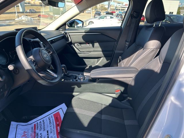 This 2025 Mazda CX-50 comes equipped with the following features Weather Package (Cargo Liner w/Seatback Protection), 12 Speakers, 4-Wheel Disc Brakes, ABS brakes, Air Conditioning, Alloy wheels, AM/FM radio: SiriusXM, AppLink/Apple CarPlay and Android Auto, Auto High-beam Headlights, Automatic temperature control, Brake assist, Bumpers: body-color, Delay-off headlights, Driver door bin, Driver vanity mirror, Dual front impact airbags, Dual front side impact airbags, Electronic Stability Control, Emergency communication system: MAZDA CONNECT, Exterior Parking Camera Rear, Front & Rear Splash Guards, Front anti-roll bar, Front Bucket Seats, Front Center Armrest, Front dual zone A/C, Front reading lights, Front wheel independent suspension, Fully automatic headlights, Half Leatherette Seat Trim, Heated door mirrors, Heated front seats, Heated Front Seats w/3 Level Adjustment, Illuminated entry, Knee airbag, Leather Shift Knob, Leather steering wheel, Low tire pressure warning, Occupant sensing airbag, Outside temperature display, Overhead airbag, Overhead console, Panic alarm, Passenger door bin, Passenger vanity mirror, Power door mirrors, Power driver seat, Power Liftgate, Power moonroof, Power steering, Power windows, Radio data system, Radio: AM/FM/HD Bose 12-Speaker Audio Sound System, Rain sensing wipers, Rear seat center armrest, Rear window defroster, Rear window wiper, Remote keyless entry, Speed control, Speed-sensing steering, Split folding rear seat, Spoiler, Steering wheel mounted audio controls, Tachometer, Telescoping steering wheel, Tilt steering wheel, Traction control, Trip computer, Turn signal indicator mirrors, Variably intermittent wipers, Wheels: 17" x 7J Aluminum Alloy Black Metallic Finish, and Wind Chill Pearl Paint Charge. Clean CARFAX. 2025 Mazda CX-50 2.5 S Premium Package AWD SKYACTIV® 2.5L 4-Cylinder DOHC 16V