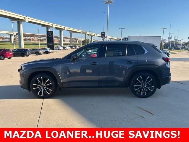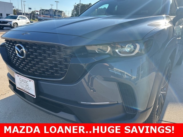 This 2025 Mazda CX-50 comes equipped with the following features Weather Package (Cargo Liner w/Seatback Protection), 12 Speakers, 20" x 8J Aluminum Alloy Wheels, 4-Wheel Disc Brakes, ABS brakes, Air Conditioning, Alloy wheels, AM/FM radio: SiriusXM, AppLink/Apple CarPlay and Android Auto, Auto High-beam Headlights, Auto-dimming Rear-View mirror, Automatic temperature control, Black Lug Nuts & Black Wheel Locks, Brake assist, Bumpers: body-color, Delay-off headlights, Driver door bin, Driver vanity mirror, Dual front impact airbags, Dual front side impact airbags, E911 Automatic Emergency Notification, Electronic Stability Control, Emergency communication system: MAZDA CONNECT, Exterior Parking Camera Rear, Front & Rear Splash Guards, Front anti-roll bar, Front Bucket Seats, Front Center Armrest, Front dual zone A/C, Front reading lights, Front wheel independent suspension, Fully automatic headlights, Garage door transmitter: HomeLink, Heads-Up Display, Heated & Ventilated Front Bucket Seats, Heated door mirrors, Heated front seats, Illuminated entry, Infotainment System Voice Command, Knee airbag, Leather Seat Trim, Leather Shift Knob, Leather steering wheel, Low tire pressure warning, Memory seat, Multifunction Commander Control, Occupant sensing airbag, Outside temperature display, Overhead airbag, Overhead console, Panic alarm, Passenger door bin, Passenger vanity mirror, Polymetal Gray Metallic Paint Charge, Power door mirrors, Power driver seat, Power Liftgate, Power moonroof, Power passenger seat, Power steering, Power windows, Radio Broadcast Data System Program Information, Radio data system, Radio: AM/FM/HD Audio System, Rain sensing wipers, Rear seat center armrest, Rear window defroster, Rear window wiper, Remote keyless entry, SMS Text Msg Audio Delivery & Reply, Speed control, Speed-sensing steering, Split folding rear seat, Spoiler, Steering wheel mounted audio controls, Tachometer, Telescoping steering wheel, Tilt steering wheel, Traction control, Trailer Hitch w/4-Pin Harness, Trip computer, Turn signal indicator mirrors, Variably intermittent wipers, and Ventilated front seats. Clean CARFAX. 2025 Mazda CX-50 2.5 S Premium Plus Package AWD SKYACTIV® 2.5L 4-Cylinder DOHC 16V