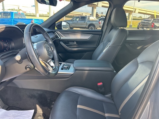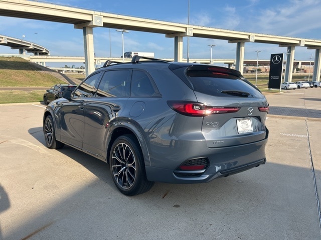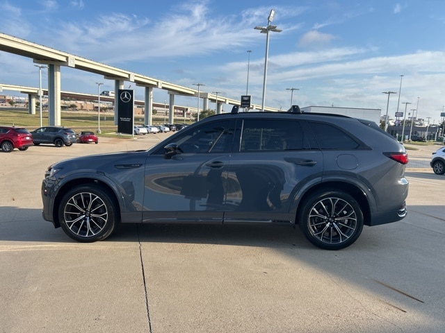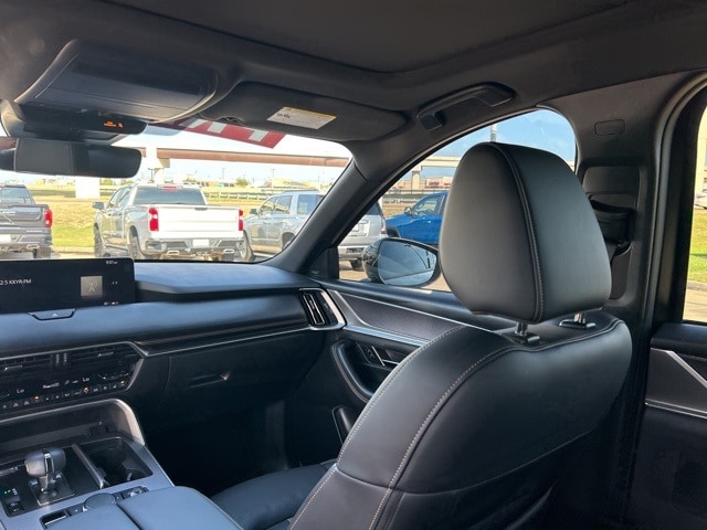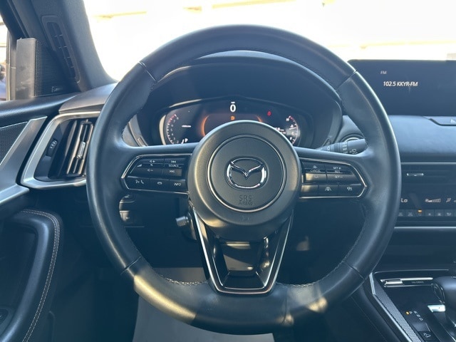 This 2025 Mazda CX-70 comes equipped with the following features 12 Speakers, 4-Wheel Disc Brakes, ABS brakes, Air Conditioning, Alloy wheels, AM/FM radio: SiriusXM, Auto High-beam Headlights, Auto-dimming door mirrors, Auto-dimming Rear-View mirror, Automatic temperature control, Brake assist, Bumpers: body-color, Cargo Net, Compass, Crossbars in Black, Delay-off headlights, Driver door bin, Driver vanity mirror, Dual front impact airbags, Dual front side impact airbags, E911 Automatic Emergency Notification, Electronic Stability Control, Emergency communication system: MAZDA CONNECT, Four wheel independent suspension, Front anti-roll bar, Front Bucket Seats, Front Center Armrest w/Storage, Front dual zone A/C, Front reading lights, Fully automatic headlights, Garage door transmitter: HomeLink, Heads-Up Display, Heated door mirrors, Heated front seats, Heated rear seats, Heated steering wheel, Heated/Ventilated Front Bucket Seats, Illuminated entry, Infotainment System Voice Command, Knee airbag, Leather Shift Knob, Leather steering wheel, Low tire pressure warning, Mazda Connected Services, Mazda Online Navigation, Memory seat, Nappa Leather Seat Trim, Navigation system: MAZDA CONNECT, Occupant sensing airbag, Outside temperature display, Overhead airbag, Overhead console, Pandora Internet Radio Integration, Panic alarm, Passenger door bin, Passenger vanity mirror, Polymetal Gray Metallic Paint Charge, Power door mirrors, Power driver seat, Power Liftgate, Power moonroof, Power passenger seat, Power steering, Power windows, Radio Broadcast Data System Program Information, Radio data system, Radio: AM/FM w/Bose Premium Audio Sound System, Rain sensing wipers, Rear air conditioning, Rear anti-roll bar, Rear reading lights, Rear seat center armrest, Rear window defroster, Rear window wiper, Remote keyless entry, Security system, SMS Text Msg Audio Delivery & Reply, Speed control, Speed-sensing steering, Split folding rear seat, Spoiler, Steering wheel memory, Steering wheel mounted audio controls, Tachometer, Telescoping steering wheel, Tilt steering wheel, Traction control, Trip computer, Turn signal indicator mirrors, Variably intermittent wipers, Ventilated front seats, and Wheels: 21" x 9.5J Aluminum Alloy. CARFAX One-Owner. 2025 Mazda CX-70 3.3 Turbo S Premium AWD I6 Turbo