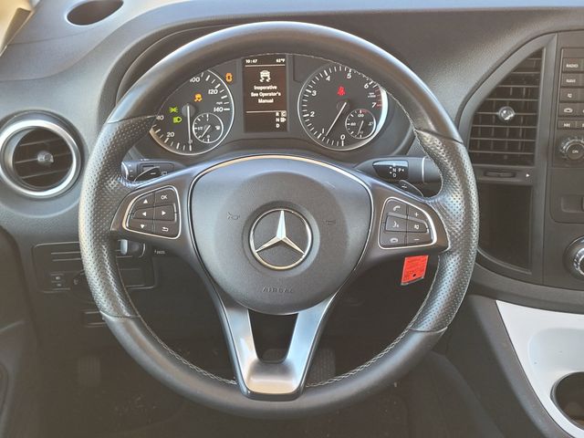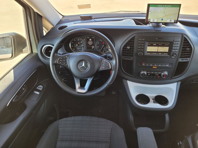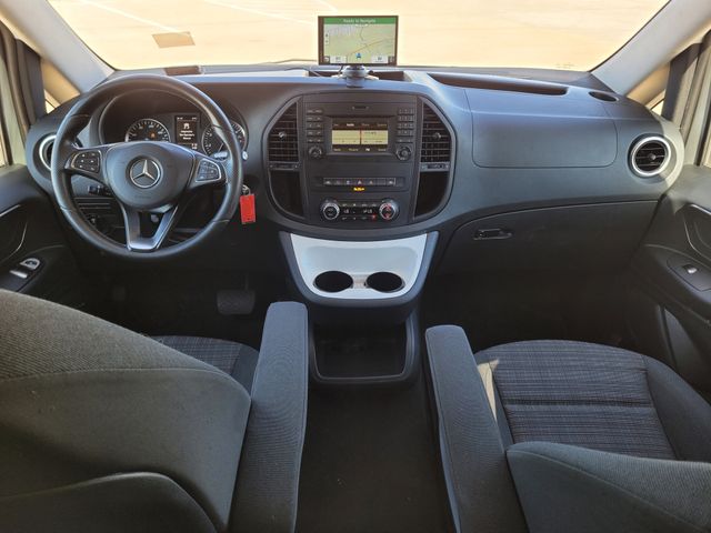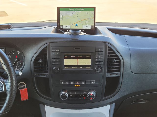 This 2017 Mercedes-Benz Metris comes equipped with 3rd row seats: bench, 4-Wheel Disc Brakes, 5 Front & 4 Rear Audio System Speakers, 7-Passenger Seating, 9 Speakers, ABS brakes, Adjustable Front Driver Seat, Adjustable Front Passenger Seat, Air Conditioning, AM/FM radio, Brake assist, Delay-off headlights, Driver door bin, Driver's Seat Mounted Armrest, Dual front impact airbags, Dual front side impact airbags, Electronic Stability Control, Four wheel independent suspension, Front anti-roll bar, Front Bucket Seats, Fully automatic headlights, Illuminated entry, Low tire pressure warning, Occupant sensing airbag, Outside temperature display, Overhead airbag, Overhead console, Passenger door bin, Passenger seat mounted armrest, Power steering, Power windows, Rear air conditioning, Remote keyless entry, Removable Second Row Seats, 2-Places, Removable Third Row Seats, 3-Places, Tachometer, Tilt steering wheel, Traction control, and Wheels: 6.5J x 17" Steel.