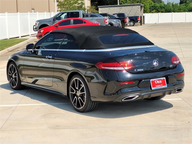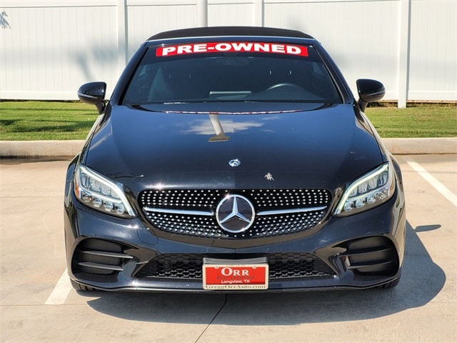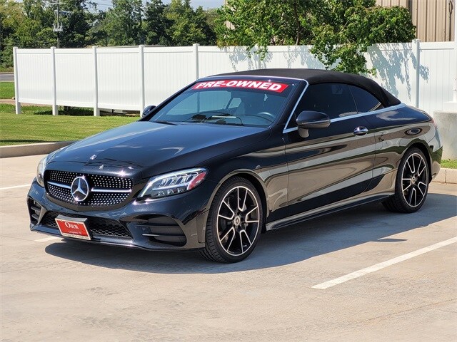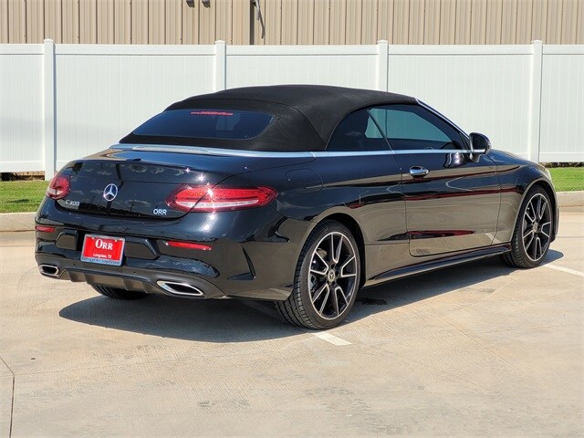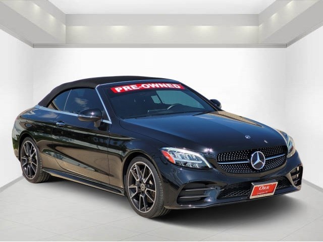 This 2020 Mercedes-Benz C-Class comes equipped with 13 Speakers, 4-Way Lumbar Support, 4-Wheel Disc Brakes, ABS brakes, Air Conditioning, Alloy wheels, AM/FM radio: SiriusXM, Android Auto®, Anti-whiplash front head restraints, Apple CarPlay®, Apple CarPlay®/Android Auto®, Auto tilt-away steering wheel, Auto-dimming door mirrors, Auto-dimming Rear-View mirror, Automatic temperature control, Black SoftTop, Brake assist, Bumpers: body-color, Child-Seat-Sensing Airbag, Compass, Convertible roof lining, Convertible roof wind blocker, Delay-off headlights, Driver door bin, Driver vanity mirror, Dual front impact airbags, Dual front side impact airbags, Electronic Stability Control, Emergency communication system: Mercedes me connect, Exterior Parking Camera Rear, Four wheel independent suspension, Front anti-roll bar, Front Bucket Seats, Front Center Armrest, Front dual zone A/C, Front reading lights, Fully automatic headlights, Garage door transmitter: Homelink, Genuine wood console insert, Genuine wood door panel insert, Glass rear window, HD-Radio, Head restraints memory, Heated door mirrors, Heated Front Seats, Heated front seats, Illuminated entry, Integrated roll-over protection, Knee airbag, Low tire pressure warning, MB-Tex Upholstery, Memory seat, Occupant sensing airbag, Outside temperature display, Overhead airbag, Overhead console, Panic alarm, Passenger door bin, Passenger vanity mirror, Power adjustable front head restraints, Power convertible roof, Power door mirrors, Power driver seat, Power Front Seats w/Driver Memory, Power passenger seat, Power steering, Power windows, Radio data system, Radio: Burmester® Surround Sound System, Rain sensing wipers, Rear anti-roll bar, Rear fog lights, Rear side impact airbag, Rear window defroster, Remote keyless entry, Security system, SiriusXM Radio, Smartphone Integration, Speed control, Speed-sensing steering, Split folding rear seat, Steering wheel memory, Steering wheel mounted audio controls, Tachometer, Telescoping steering wheel, Tilt steering wheel, Traction control, Trip computer, Turn signal indicator mirrors, Variably intermittent wipers, Weather band radio, and Wheels: 18" Split 5-Spoke. 21/29 City/Highway MPG