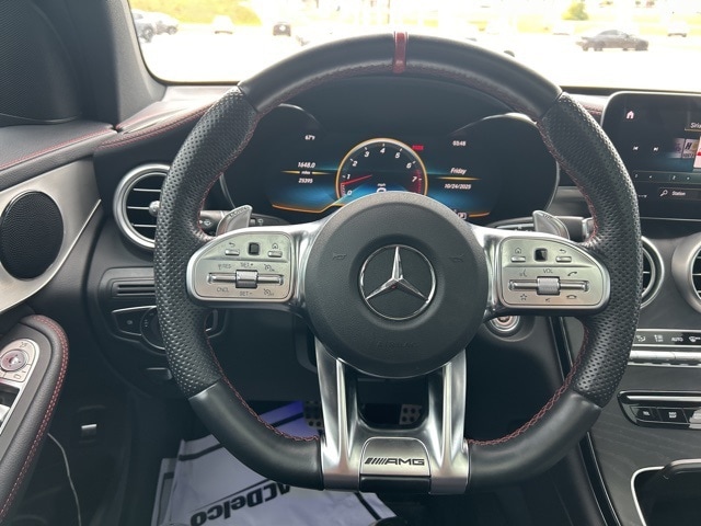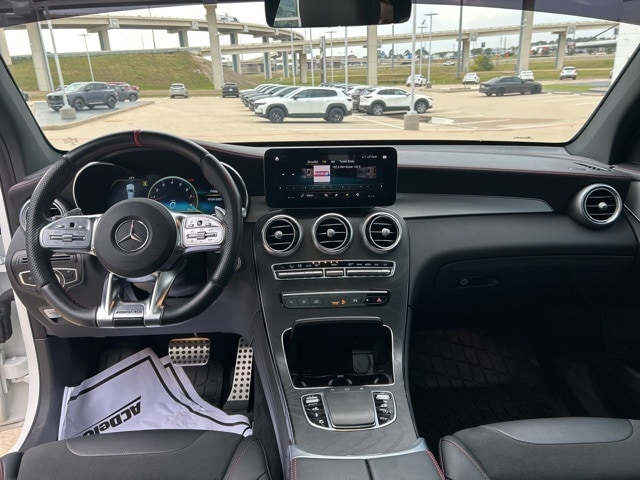 This 2022 Mercedes-Benz GLC comes equipped with the following features 10.25" Center Touchscreen Display w/Touchpad, 3.69 Axle Ratio, 4-Way Lumbar Support, 4-Wheel Disc Brakes, 6 Speakers, ABS brakes, Adaptive suspension, Air Conditioning, Alloy wheels, AM/FM radio: SiriusXM, Android Auto®, Apple CarPlay®, Apple CarPlay®/Android Auto®, Auto High-beam Headlights, Auto tilt-away steering wheel, Auto-dimming door mirrors, Auto-dimming Rear-View mirror, Auto-leveling suspension, Automatic temperature control, Brake assist, Bumpers: body-color, Child-Seat-Sensing Airbag, Delay-off headlights, Driver door bin, Driver vanity mirror, Dual front impact airbags, Dual front side impact airbags, Electronic Stability Control, Emergency communication system: eCall Emergency System, Exterior Parking Camera Rear, Four wheel independent suspension, Front anti-roll bar, Front Bucket Seats, Front Center Armrest, Front dual zone A/C, Front reading lights, Fully automatic headlights, Garage door transmitter: HomeLink, Genuine wood dashboard insert, Heated door mirrors, Heated front seats, Illuminated entry, Knee airbag, Leather steering wheel, Low tire pressure warning, MB-Tex/Microfiber Upholstery, Memory seat, Occupant sensing airbag, Outside temperature display, Overhead airbag, Overhead console, Panic alarm, Passenger door bin, Passenger vanity mirror, Power adjustable front head restraints, Power door mirrors, Power driver seat, Power Heated Front Bucket Seats, Power Liftgate, Power passenger seat, Power steering, Power windows, Radio data system, Radio: AM/FM Audio System, Rain sensing wipers, Rear anti-roll bar, Rear fog lights, Rear reading lights, Rear seat center armrest, Rear window defroster, Rear window wiper, Remote keyless entry, Roof rack: rails only, Security system, SiriusXM Satellite Radio, Smartphone Integration, Speed control, Speed-sensing steering, Split folding rear seat, Spoiler, Sport steering wheel, Steering wheel memory, Steering wheel mounted audio controls, Tachometer, Telescoping steering wheel, Tilt steering wheel, Traction control, Trip computer, Turn signal indicator mirrors, Variably intermittent wipers, and Wheels: 20" AMG® Y 5-Spoke. Clean CARFAX. CARFAX One-Owner. 2022 Mercedes-Benz GLC 43 AMG® 4MATIC® 4MATIC® V6