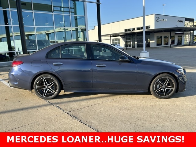 This 2024 Mercedes-Benz C-Class comes equipped with the following features 11.9" Center Touchscreen Display, 18" 5-Spoke Wheels, 4-Wheel Disc Brakes, 5 Speakers, ABS brakes, Air Conditioning, Alloy wheels, AM/FM radio: SiriusXM, Anti-whiplash front head restraints, Apple CarPlay®/Android Auto®, Auto High-beam Headlights, Auto tilt-away steering wheel, Auto-dimming door mirrors, Auto-dimming Rear-View mirror, Automatic temperature control, Brake assist, Bumpers: body-color, Child-Seat-Sensing Airbag, Compass, Delay-off headlights, Driver door bin, Driver vanity mirror, Dual front impact airbags, Dual front side impact airbags, Electronic Stability Control, Emergency communication system: Mercedes-Benz Emergency Call Service, Exterior Parking Camera Rear, Four wheel independent suspension, Front anti-roll bar, Front Bucket Seats, Front Center Armrest, Front dual zone A/C, Front reading lights, Fully automatic headlights, Garage door transmitter: HomeLink, Genuine wood dashboard insert, Head restraints memory, Heated door mirrors, Heated front seats, Illuminated entry, Knee airbag, Leather steering wheel, Low tire pressure warning, Lumbar Support, MB-Tex Upholstery, Memory seat, Occupant sensing airbag, Outside temperature display, Overhead airbag, Overhead console, Panic alarm, Passenger door bin, Passenger vanity mirror, Power adjustable front head restraints, Power door mirrors, Power driver seat, Power Heated Front Seats w/Memory, Power moonroof, Power passenger seat, Power steering, Power windows, Premium audio system: MBUX, Radio data system, Radio: FrontBass 5-Speaker Audio System, Rain sensing wipers, Rear anti-roll bar, Rear fog lights, Rear reading lights, Rear seat center armrest, Rear window defroster, Remote keyless entry, Security system, SiriusXM Satellite Radio, Speed control, Speed-sensing steering, Split folding rear seat, Steering wheel memory, Steering wheel mounted audio controls, Tachometer, Telescoping steering wheel, Tilt steering wheel, Traction control, Trip computer, Turn signal indicator mirrors, Variably intermittent wipers, and Weather band radio. Clean CARFAX. 2024 Mercedes-Benz C-Class C 300 RWD 2.0L I4 Turbocharged