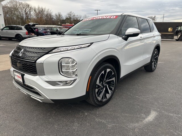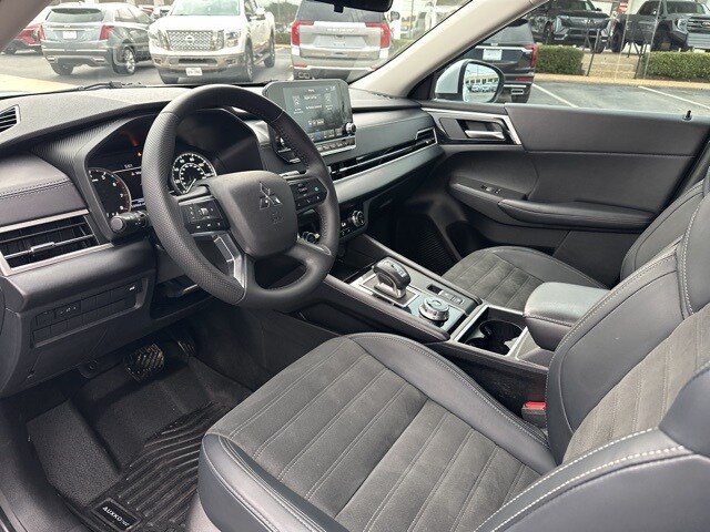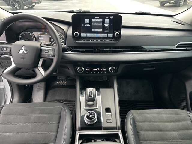 This 2024 Mitsubishi Outlander comes equipped with 3rd row seats: split-bench, 4-Wheel Disc Brakes, 5.694 Axle Ratio, 6 Speakers, ABS brakes, Air Conditioning, Alloy wheels, AM/FM radio: SiriusXM, Android Auto & Apple CarPlay, Auto High-beam Headlights, Automatic temperature control, Brake assist, Bumpers: body-color, Driver door bin, Driver vanity mirror, Dual front impact airbags, Dual front side impact airbags, Electronic Stability Control, Emergency communication system: Mitsubishi Connect w/ 24-month trial, Exterior Parking Camera Rear, Four wheel independent suspension, Front anti-roll bar, Front Bucket Seats, Front Center Armrest w/Storage, Front dual zone A/C, Front fog lights, Front reading lights, Fully automatic headlights, Heated door mirrors, Heated Front Bucket Seats, Heated front seats, Illuminated entry, Knee airbag, Leather Shift Knob, Leather steering wheel, Low tire pressure warning, Navigation System, Occupant sensing airbag, Outside temperature display, Overhead airbag, Overhead console, Panic alarm, Passenger door bin, Passenger vanity mirror, Power door mirrors, Power driver seat, Power Liftgate, Power steering, Power windows, Radio data system, Radio: AM/FM 9.0" Navigation w/Smartphone Link, Rain sensing wipers, Rear anti-roll bar, Rear seat center armrest, Rear side impact airbag, Rear window defroster, Rear window wiper, Reclining 3rd row seat, Remote keyless entry, Security system, Speed control, Speed-Sensitive Wipers, Split folding rear seat, Spoiler, Steering wheel mounted audio controls, Synthetic Leather Seat Trim, Tachometer, Telescoping steering wheel, Tilt steering wheel, Traction control, Trip computer, Turn signal indicator mirrors, Variably intermittent wipers, and Wheels: 20" Two-Tone Alloy. 24/31 City/Highway MPG