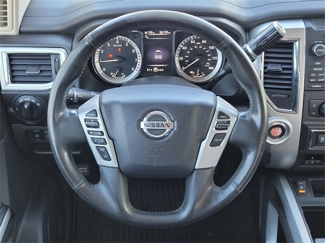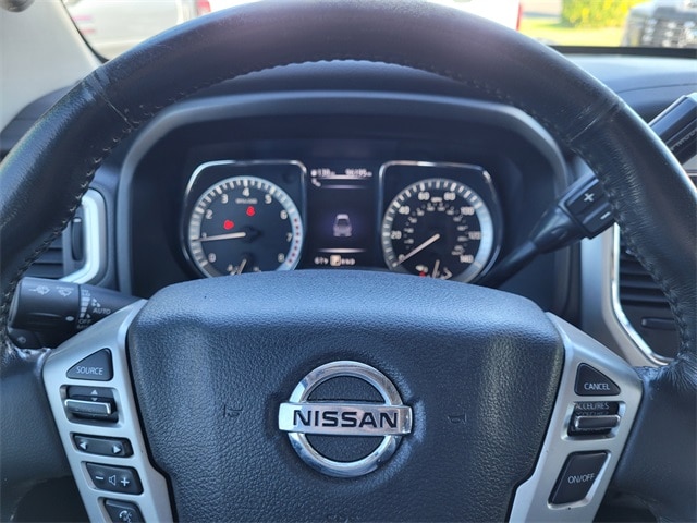 This 2016 Nissan Titan XD comes equipped with SV Comfort & Convenience Package (20" Alloy Wheels, Auto On/Off Headlights, Auto-Dimming Rear-View Mirror, Blind Spot Warning w/Rear Cross Traffic Alert, Chrome Interior Door Locks, Dual Zone HVAC, Fog Lamps, Front & Rear Parking Sensors, Heated Captain's Seats w/Center Console, Intelligent Key System, Leather Wrapped Steering Wheel, Painted Rear Bumper, Power Slide Rear Window w/Defogger, Radio: NissanConnect w/Navigation & Mobile Apps, Rain Sensing Wipers, Rear HVAC Vents, Rearview Monitor, and Step Rails), 17" x 7.5" Styled Steel Wheels, 3.357 Axle Ratio, 4-Wheel Disc Brakes, 6 Speaker System, 6 Speakers, ABS brakes, Activation Disclaimer, Air Conditioning, AM/FM radio: SiriusXM, Brake assist, Bumpers: chrome, CD player, Cloth Seat Trim, Driver door bin, Driver vanity mirror, Dual front impact airbags, Dual front side impact airbags, Electronic Stability Control, Front anti-roll bar, Front Center Armrest w/Storage, Front reading lights, Front Split Bench Seat (40/20/40), Front wheel independent suspension, Heated door mirrors, Illuminated entry, Low tire pressure warning, Occupant sensing airbag, Outside temperature display, Overhead airbag, Overhead console, Panic alarm, Passenger door bin, Passenger vanity mirror, Power door mirrors, Power steering, Power windows, Radio data system, Radio: AM/FM/CD/AUX/MP3, Rear anti-roll bar, Rear seat center armrest, Rear Seat Storage Compartment, Rear step bumper, Rear window defroster, Remote keyless entry, Running Boards, Security system, Speed control, Speed-sensing steering, Speed-Sensitive Wipers, Split folding rear seat, Steering wheel mounted audio controls, Tachometer, Telescoping steering wheel, Tilt steering wheel, Traction control, Turn signal indicator mirrors, Variably intermittent wipers, and Voltmeter. CARFAX One-Owner. Clean CARFAX. One Owner Carfax, 20" Alloy Wheels, Auto On/Off Headlights, Auto-Dimming Rear-View Mirror, Blind Spot Warning w/Rear Cross Traffic Alert, Chrome Interior Door Locks, Dual Zone HVAC, Fog Lamps, Front & Rear Parking Sensors, Heated Captain's Seats w/Center Console, Intelligent Key System, Leather Wrapped Steering Wheel, Painted Rear Bumper, Power Slide Rear Window w/Defogger, Radio: NissanConnect w/Navigation & Mobile Apps, Rain Sensing Wipers, Rear HVAC Vents, Rearview Monitor, Step Rails, SV Comfort & Convenience Package.