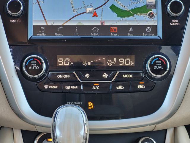 This 2017 Nissan Murano comes equipped with CVT with Xtronic, Navigation System, 4-Wheel Disc Brakes, 4.677 Axle Ratio, 6 Speakers, ABS brakes, Activation Disclaimer, Air Conditioning, Alloy wheels, AM/FM radio: SiriusXM, Automatic temperature control, Brake assist, Bumpers: body-color, CD player, Cloth Seat Trim, Delay-off headlights, Driver door bin, Driver vanity mirror, Dual front impact airbags, Dual front side impact airbags, Electronic Stability Control, Four wheel independent suspension, Front anti-roll bar, Front Bucket Seats, Front dual zone A/C, Front fog lights, Front reading lights, Fully automatic headlights, Illuminated entry, Knee airbag, Leather Shift Knob, Low tire pressure warning, Occupant sensing airbag, Outside temperature display, Overhead airbag, Overhead console, Panic alarm, Passenger door bin, Passenger vanity mirror, Power door mirrors, Power driver seat, Power Panoramic Moonroof, Power passenger seat, Power steering, Power windows, Radio data system, Radio: AM/FM/CD Audio System w/Navigation, Rear anti-roll bar, Rear reading lights, Rear seat center armrest, Rear window defroster, Rear window wiper, Remote keyless entry, Roof rack: rails only, Security system, Special Paint - Pearl White, Speed control, Speed-sensing steering, Speed-Sensitive Wipers, Split folding rear seat, Spoiler, Steering wheel mounted audio controls, Tachometer, Telescoping steering wheel, Tilt steering wheel, Traction control, Trip computer, Turn signal indicator mirrors, Variably intermittent wipers, and Wheels: 18" Machined Aluminum-Alloy. Clean CARFAX. 21/28 City/Highway MPG CVT with Xtronic, Navigation System.