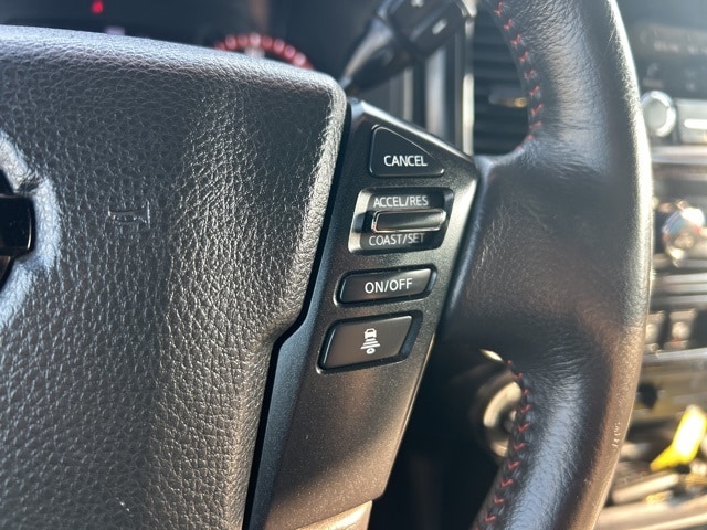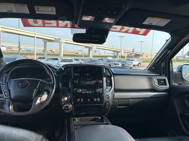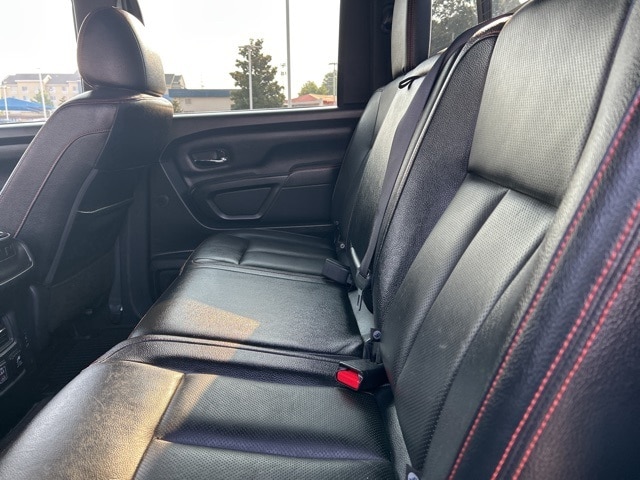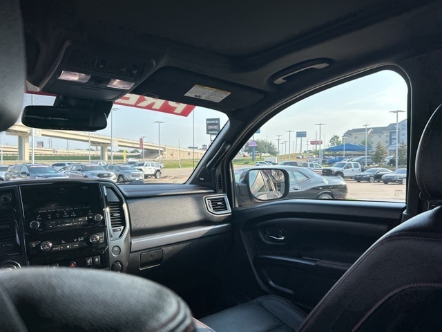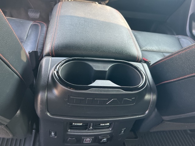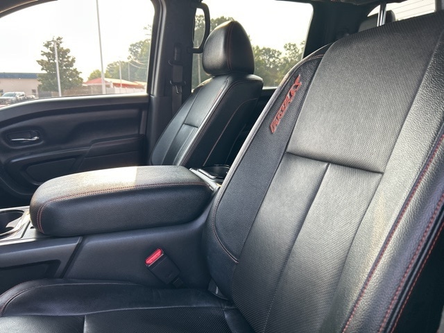This 2021 Nissan Titan comes equipped with the following features Off Road Protection Package (All Season Floor Mats), PRO-4X Convenience Package (4-Way Power Assist Seat, Heated Driver & Passenger Seat, Heated Power Tilt/Telescopic Steering Wheel, Heated Rear Seats, Intelligent Around View Monitor (I-AVM), Leather Seat Trim, Memory Driver Seat w/Auto Entry/Exit Feature, Power Folding Auto Dimming Outside Mirrors, and Side Turn Signal Lamps on Mirror Housing), PRO-4X Moonroof Package (Driver & Passenger Ventilated Front Seats and Dual Panel Panoramic Moonroof w/Tilt & Slide), PRO-4X Utility Package (Fender Premium Audio System w/12 Speakers and Proximity Activation), 4WD, 3.692 Axle Ratio, 4-Wheel Disc Brakes, 6 Speakers, ABS brakes, Air Conditioning, Alloy wheels, AM/FM radio: SiriusXM, Auto High-beam Headlights, Auto-dimming Rear-View mirror, Auto-leveling suspension, Automatic temperature control, Blind Spot Warning, Brake assist, Cloth Seat Trim w/Vinyl Bolsters, Compass, Delay-off headlights, Driver door bin, Driver vanity mirror, Dual front impact airbags, Dual front side impact airbags, Electronic Stability Control, Emergency communication system: NissanConnect Services, Front anti-roll bar, Front Bucket Seats, Front Captain's Seats, Front Center Armrest, Front dual zone A/C, Front fog lights, Front reading lights, Front wheel independent suspension, Fully automatic headlights, Garage door transmitter: HomeLink, Heated door mirrors, Illuminated entry, Knee airbag, Leather steering wheel, Low tire pressure warning, Navigation system: NissanConnect Navigation, NissanConnect featuring Apple CarPlay and Android Auto, Occupant sensing airbag, Outside temperature display, Overhead airbag, Overhead console, Panic alarm, Passenger door bin, Passenger vanity mirror, Power door mirrors, Power driver seat, Power steering, Power windows, PRO-4X Badged Floor Mats (DISC), PRO-4X Illuminated Kick Plate, Pro4X Mud Flaps, Pro4X Rugged Step Boards, Radio data system, Radio: NissanConnect w/Navigation, Rain sensing wipers, Rear anti-roll bar, Rear Bumper Step w/Electronic Tailgate Lock, Rear Parking Sensors, Rear seat center armrest, Rear step bumper, Rear window defroster, Remote keyless entry, Security system, Speed control, Speed-sensing steering, Speed-Sensitive Wipers, Split folding rear seat, Steering wheel mounted audio controls, Tachometer, Telescoping steering wheel, Tilt steering wheel, Traction control, Trip computer, Variably intermittent wipers, Voltmeter, and Wheels: 18" x 8" Painted Dark Finish Alloy. 4WD. Clean CARFAX. CARFAX One-Owner. 2021 Nissan Titan PRO-4X 4WD 5.6L V8 DOHC 32V 400hp