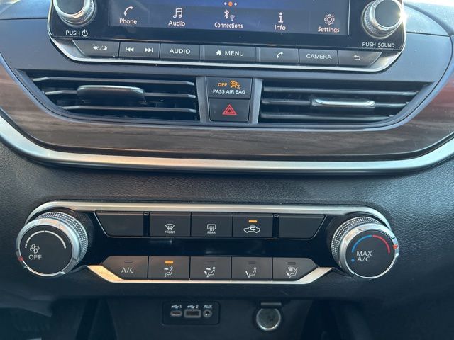 This 2023 Nissan Altima comes equipped with the following features CVT with Xtronic, 17" Machined Alloy Wheels, 4-Wheel Disc Brakes, 6 Speakers, ABS brakes, Air Conditioning, Alloy wheels, AM/FM radio: SiriusXM, Auto High-beam Headlights, Blind Spot Warning, Brake assist, Bumpers: body-color, Cloth Seat Trim, Delay-off headlights, Driver door bin, Driver vanity mirror, Dual front impact airbags, Dual front side impact airbags, Electronic Stability Control, Four wheel independent suspension, Front anti-roll bar, Front Bucket Seats, Front Center Armrest, Front reading lights, Fully automatic headlights, Illuminated entry, Knee airbag, Low tire pressure warning, NissanConnect featuring Apple CarPlay and Android Auto, Occupant sensing airbag, Outside temperature display, Overhead airbag, Overhead console, Panic alarm, Passenger door bin, Passenger vanity mirror, Power door mirrors, Power driver seat, Power steering, Power windows, Radio data system, Radio: AM/FM Audio System, Rear anti-roll bar, Rear Parking Sensors, Rear reading lights, Rear seat center armrest, Rear side impact airbag, Rear window defroster, Remote keyless entry, Security system, Speed control, Speed-sensing steering, Speed-Sensitive Wipers, Split folding rear seat, Steering wheel mounted audio controls, Tachometer, Telescoping steering wheel, Tilt steering wheel, Traction control, Trip computer, and Variably intermittent wipers. CVT with Xtronic. CARFAX One-Owner. 2023 Nissan Altima 2.5 SV FWD 2.5L 4-Cylinder DOHC 16V