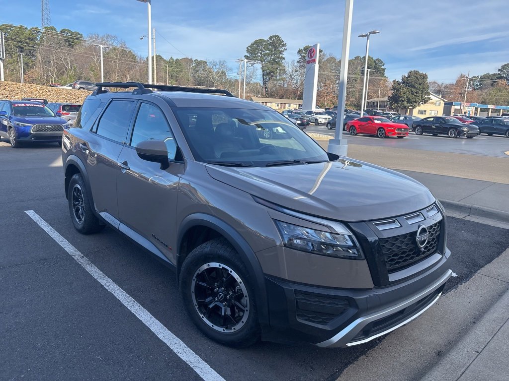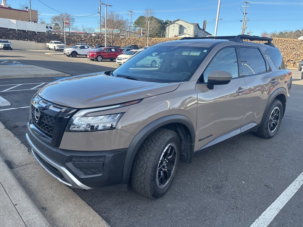 Recent Arrival! This 2023 Nissan Pathfinder comes equipped with, 4WD, 3rd row seats: bench, 4-Wheel Disc Brakes, 6 Speakers, ABS brakes, Air Conditioning, Alloy wheels, AM/FM radio: SiriusXM, Auto High-beam Headlights, Automatic temperature control, Axle Ratio: 4.334, Black Splash Guards (Set of 4), Brake assist, Delay-off headlights, Driver door bin, Driver vanity mirror, Dual front impact airbags, Dual front side impact airbags, Electronic Stability Control, Emergency communication system: NissanConnect Services, Four wheel independent suspension, Front anti-roll bar, Front Bucket Seats, Front Center Armrest, Front dual zone A/C, Front fog lights, Front reading lights, Fully automatic headlights, Heated door mirrors, Heated Front Bucket Seats, Heated front seats, Illuminated entry, Knee airbag, Leather steering wheel, Leatherette Seating Surfaces, Low tire pressure warning, Nissan USB Charging Cable Set, NissanConnect featuring Apple CarPlay and Android Auto, Occupant sensing airbag, Outside temperature display, Overhead airbag, Overhead console, Panic alarm, Passenger door bin, Passenger vanity mirror, Power door mirrors, Power driver seat, Power steering, Power windows, Radio data system, Radio: AM/FM Audio System w/NissanConnect, Rear air conditioning, Rear anti-roll bar, Rear Parking Sensors, Rear reading lights, Rear side impact airbag, Rear window defroster, Rear window wiper, Reclining 3rd row seat, Remote keyless entry, Rock Creek AS Floor Liners & Cargo Area Protector, Rock Creek Roof Rack, Roof rack, Security system, Speed control, Speed-sensing steering, Split folding rear seat, Spoiler, Steering wheel mounted audio controls, Tachometer, Telescoping steering wheel, Tilt steering wheel, Traction control, Trip computer, Turn signal indicator mirrors, Variably intermittent wipers, Wheels: 18" Beadlock Styled Design, 4WD.