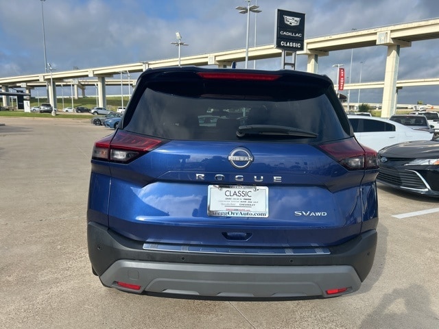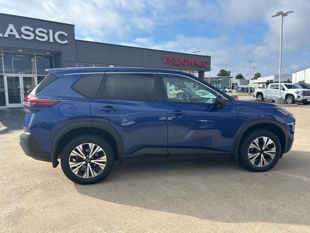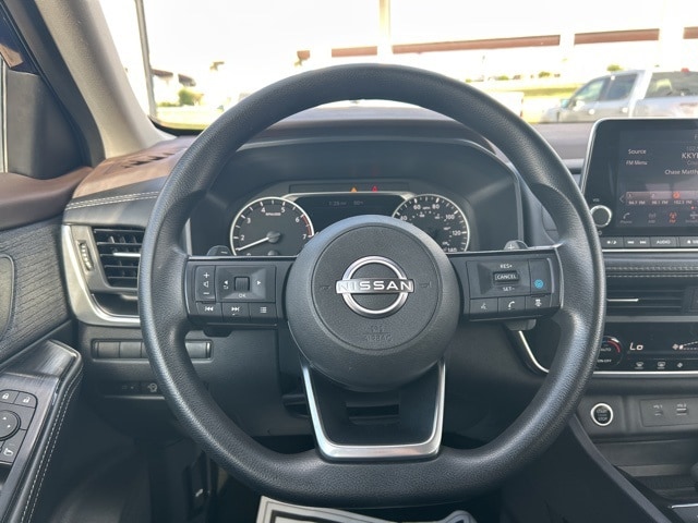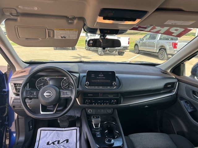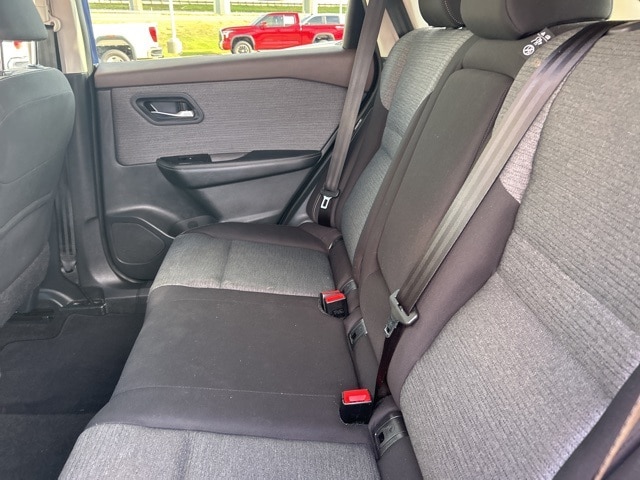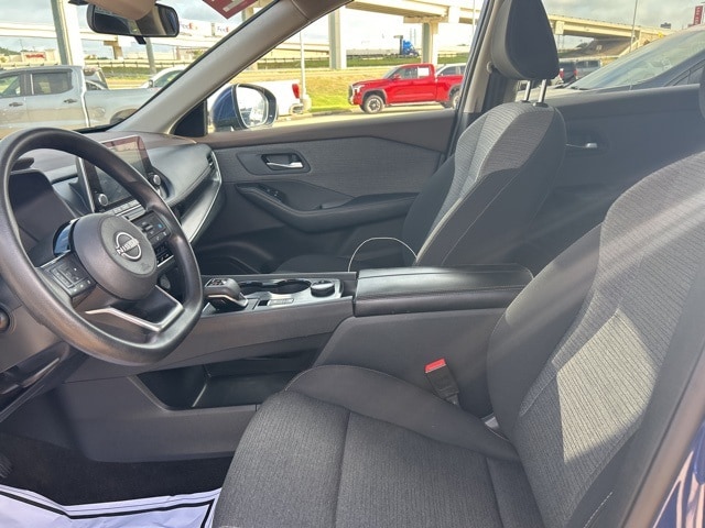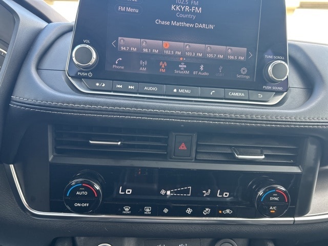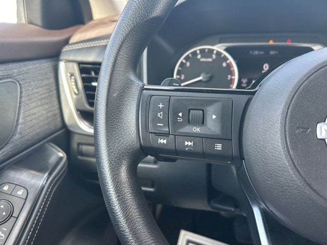 This 2023 Nissan Rogue comes equipped with the following features AWD, 18" Aluminum Alloy Wheels, 4-Wheel Disc Brakes, 5.604 Axle Ratio, 6 Speakers, ABS brakes, Air Conditioning, Alloy wheels, AM/FM Radio, AM/FM radio: SiriusXM, Auto High-beam Headlights, Automatic temperature control, Black Splash Guards (Set of 4), Brake assist, Bumpers: body-color, Chrome Rear Bumper Protector, Cloth Seat Trim, Delay-off headlights, Driver door bin, Driver vanity mirror, Dual front impact airbags, Dual front side impact airbags, Electronic Stability Control, Emergency communication system: NissanConnect Services, First Aid Kit, Floor Mats w/1-Piece Cargo Area Protector, Four wheel independent suspension, Front anti-roll bar, Front Bucket Seats, Front Center Armrest, Front dual zone A/C, Front reading lights, Fully automatic headlights, Heated door mirrors, Illuminated entry, Knee airbag, Low tire pressure warning, NissanConnect featuring Apple CarPlay and Android Auto, Occupant sensing airbag, Outside temperature display, Overhead airbag, Overhead console, Panic alarm, Passenger door bin, Passenger vanity mirror, Power door mirrors, Power driver seat, Power steering, Power windows, Radio data system, Rear anti-roll bar, Rear Parking Sensors, Rear seat center armrest, Rear side impact airbag, Rear window defroster, Rear window wiper, Remote keyless entry, Speed control, Speed-Sensitive Wipers, Split folding rear seat, Spoiler, Steering wheel mounted audio controls, Tachometer, Telescoping steering wheel, Tilt steering wheel, Traction control, Trip computer, and Variably intermittent wipers. AWD. 2023 Nissan Rogue SV AWD 1.5L I3 Turbocharged DOHC 12V LEV3-ULEV50 201hp