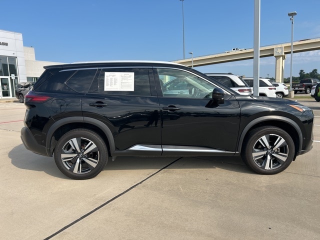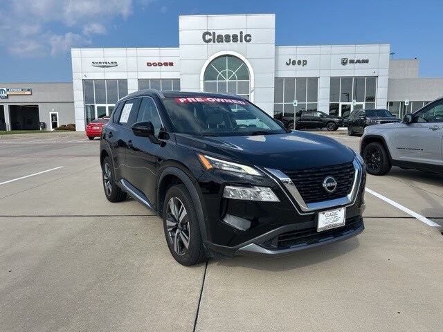 CARFAX One-Owner. 29/36 City/Highway MPG Classic CDJR in Texarkana is proud to offer this good-looking 2023 Nissan Rogue in Super Black. This 2023 Nissan Rogue comes with the following features; 19" Aluminum Alloy Wheels, 4-Wheel Disc Brakes, 5.604 Axle Ratio, 6 Speakers, ABS brakes, Air Conditioning, Alloy wheels, AM/FM Radio, AM/FM radio: SiriusXM, Auto High-beam Headlights, Auto-dimming Rear-View mirror, Automatic temperature control, Bose Premium Audio System, Brake assist, Bumpers: body-color, Delay-off headlights, Driver door bin, Driver vanity mirror, Dual front impact airbags, Dual front side impact airbags, Electronic Stability Control, Emergency communication system: NissanConnect Services, Four wheel independent suspension, Front anti-roll bar, Front Bucket Seats, Front Center Armrest, Front dual zone A/C, Front reading lights, Fully automatic headlights, Heated door mirrors, Heated Front Bucket Seats, Heated front seats, Heated steering wheel, Illuminated entry, Knee airbag, Leather steering wheel, Leather-Appointed Seat Trim, Low tire pressure warning, Memory seat, NissanConnect featuring Apple CarPlay and Android Auto, Occupant sensing airbag, Outside temperature display, Overhead airbag, Overhead console, Panic alarm, Passenger door bin, Passenger vanity mirror, Power door mirrors, Power driver seat, Power Liftgate, Power moonroof, Power passenger seat, Power steering, Power windows, Radio data system, Rear anti-roll bar, Rear Parking Sensors, Rear reading lights, Rear seat center armrest, Rear side impact airbag, Rear window defroster, Rear window wiper, Remote keyless entry, Security system, Speed control, Speed-Sensitive Wipers, Split folding rear seat, Spoiler, Steering wheel mounted audio controls, Tachometer, Telescoping steering wheel, Tilt steering wheel, Traction control, Trip computer, Turn signal indicator mirrors, and Variably intermittent wipers.