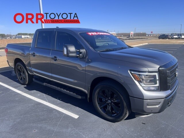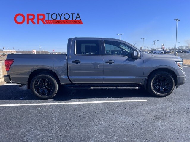 Gun Metallic 2024 Nissan Titan SV RWD 9-Speed Automatic 5.6L V8 DOHC 32V LEV3-ULEV70 400hp This Titan SV is nicely equipped with SV Midnight Edition Package (DISC) (Black Center Console Cupholder Rings, Black Center I/P, Switch & Vent Finishers, Black Driver & Front Passenger I/P Finishers, Black Front Bumper, Black Headliner & A-Pillar, Black Steering Wheel Finishers, Black Utility Mirror, Front Door TITAN Emblem Delete, Full LED Headlamp, Gloss Black Front Grille Surround, Special Liftgate Emblem Treatment, and Wheels: 20" x 8.0JJ" Black), SV Convenience Package (120V/12V Outlets In Back Of Center Console, 2 Illuminated USB-A Ports In Back Of Center Console, Auto-Dimming Rear-View Mirror, Dedicated Cell Phone Holder, Dual Illuminated Vanity Mirror Front Sun Visors, Dual Zone Automatic HVAC, Front & Rear Parking Sensors, Heated Front Captain's Chairs, Intelligent Key System, Leather-Wrapped Steering Wheel, Mood Light, NissanConnect Services, Overhead Console w/Sunglass Holder, Power Sliding Rear Window w/Defogger, Rear HVAC Vents, Remote Engine Start System, and Wi-Fi Hotspot), SV Tow Package (4-Pin/7-Pin Wiring Harness Connector (Rear Bumper), Black Front Tow Hooks, Heated Manually Extendable Tow Mirrors, Puddle Lamps, Receiver Hitch, Trailer Brake Controller, and Trailer Light Check Function On Key Fob), SV Utility Package (120V Outlet in Bed, Electronic Locking Tailgate, Flat Floor Function w/Tie Down Hooks, LED Tailgate Area Illumination, LED Under Rail Bed Lighting, Rain Sensing Wipers, Rear Utility Bed Step, Rearview Mirror w/Universal Garage Door Opener, Spray-On Bedliner, and Utilitrack System w/2 Tie-Down Cleats), 3.692 Axle Ratio, 4-Wheel Disc Brakes, 6 Speakers, ABS brakes, Air Conditioning, Alloy wheels, AM/FM radio: SiriusXM, Auto High-beam Headlights, Bed Assist Grip, Blind Spot Warning, Brake assist, Bumpers: chrome, Cloth Seat Trim, Driver door bin, Dual front impact airbags, Dual front side impact airbags, Electronic Stability Control, Front anti-roll bar, Front Center Armrest w/Storage, Front reading lights, Front Split Bench Seat (40/20/40), Front wheel independent suspension, Fully automatic headlights, Heated door mirrors, Illuminated entry, Knee airbag, Low tire pressure warning, Midnight Edition Essential Accessory, NissanConnect featuring Apple CarPlay and Android Auto, Occupant sensing airbag, Outside temperature display, Overhead airbag, Overhead console, Panic alarm, Passenger door bin, Passenger vanity mirror, Power door mirrors, Power steering, Power windows, Radio data system, Radio: AM/FM Audio System, Rear anti-roll bar, Rear Bumper Step w/Electronic Tailgate Lock, Rear Parking Sensors, Rear reading lights, Rear seat center armrest, Rear step bumper, Rear window defroster, Remote keyless entry, Security system, Speed control, Speed-sensing steering, Speed-Sensitive Wipers, Splash Guards, Split folding rear seat, Steering wheel mounted audio controls, Tachometer, Telescoping steering wheel, Tilt steering wheel, Traction control, Trip computer, Variably intermittent wipers, Voltmeter, and Wheels: 18" x 8" Painted & Machined Alloy. One owner Carfax, Carfax no accidents, Back up camera, Bluetooth, Keyless entry, Black Center Console Cupholder Rings, Black Center I/P, Switch & Vent Finishers, Black Driver & Front Passenger I/P Finishers, Black Front Bumper, Black Headliner & A-Pillar, Black Steering Wheel Finishers, Black Utility Mirror, Front Door TITAN Emblem Delete, Full LED Headlamp, Gloss Black Front Grille Surround, Special Liftgate Emblem Treatment, SV Midnight Edition Package (DISC), Wheels: 20" x 8.0JJ" Black.