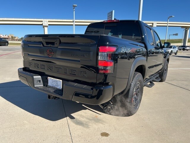 CARFAX One-Owner. Classic CDJR in Texarkana is proud to offer this superb 2025 Nissan Frontier in Super Black. This 2025 Nissan Frontier comes with the following features; Black Accent Package (Black Hood Graphic and Black Tailgate Logo Insert), Interior Protection Package, Telematics Delete Package (NissanConnect Services & Wi-Fi Hotspot Delete), Tow Package, 4WD, 17" Painted Alloy Wheels, 3.692 Axle Ratio, 4-Wheel Disc Brakes, 6 Speakers, ABS brakes, Air Conditioning, Alloy wheels, AM/FM radio: SiriusXM, Anti-whiplash front head restraints, Auto High-beam Headlights, Automatic temperature control, Blind Spot Warning, Brake assist, Bumpers: body-color, Delay-off headlights, Driver door bin, Driver vanity mirror, Dual front impact airbags, Dual front side impact airbags, Electronic Stability Control, Electronic Tailgate Lock, Emergency communication system, Essentials Kit, Front anti-roll bar, Front Bucket Seats, Front Center Armrest, Front dual zone A/C, Front fog lights, Front reading lights, Front wheel independent suspension, Fully automatic headlights, Illuminated entry, Knee airbag, Leather Shift Knob, Leather steering wheel, Low tire pressure warning, Occupant sensing airbag, Off-Road Style Step Rails, Overhead airbag, Overhead console, Panic alarm, Passenger door bin, Passenger vanity mirror, Power door mirrors, Power driver seat, Power passenger seat, Power steering, Power windows, PRO Embroidered Premium Cloth Seat Trim, PRO-4X Carpeted Floor Mats (DISC), Radio data system, Radio: SXM/AM/FM/AUX/USB Audio System, Rear anti-roll bar, Rear seat center armrest, Rear side impact airbag, Rear step bumper, Remote Engine Starter, Remote Engine Starter Accessory, Remote keyless entry, Security system, Speed control, Speed-sensing steering, Splash Guards (DISC), Split folding rear seat, Steering wheel mounted audio controls, Tachometer, Telescoping steering wheel, Tilt steering wheel, Traction control, Trip computer, Variably intermittent wipers, Voltmeter, and Wireless Apple CarPlay/Wireless Android Auto. 4WD.
