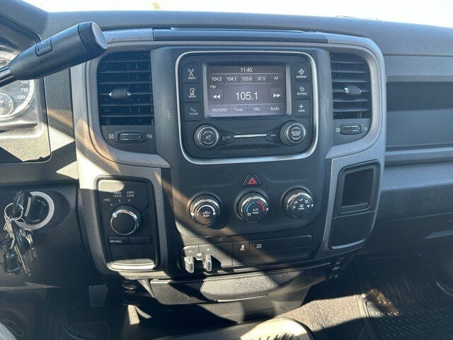 This 2014 Ram 1500 comes equipped with 17" x 7" Steel Wheels, 3.21 Rear Axle Ratio, 4-Wheel Disc Brakes, 40/20/40 Split Bench Seat, 6 Speakers, ABS brakes, Air Conditioning, AM/FM radio, Brake assist, Center Hub, Delay-off headlights, Driver door bin, Dual front impact airbags, Dual front side impact airbags, Electronic Stability Control, Front anti-roll bar, Front Armrest w/Three Cupholders, Front Center Armrest, Front wheel independent suspension, Fully automatic headlights, Heavy Duty Vinyl 40/20/40 Split Bench Seat, Low tire pressure warning, Media Hub (USB, AUX), Occupant sensing airbag, Overhead airbag, Passenger door bin, Power steering, Radio data system, Radio: Uconnect 3.0 AM/FM, Rear anti-roll bar, Rear step bumper, Speed control, Tachometer, Tilt steering wheel, Tip Start, Traction control, Variably intermittent wipers, Vendor Painted Cargo Box Tracking, and Voltmeter. Clean CARFAX. Carfax no accidents.