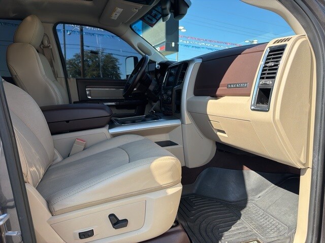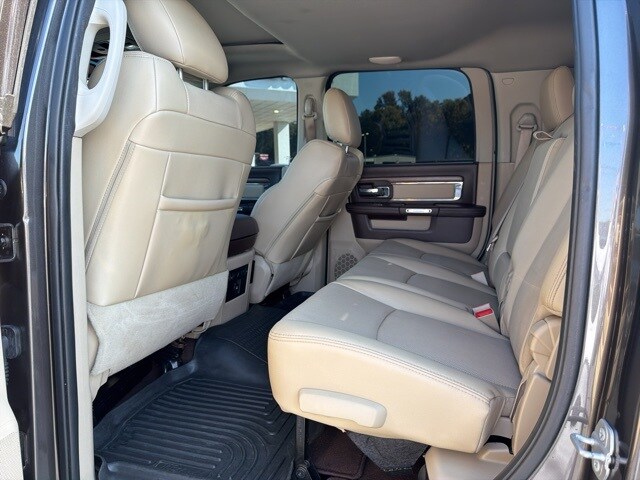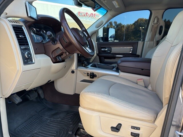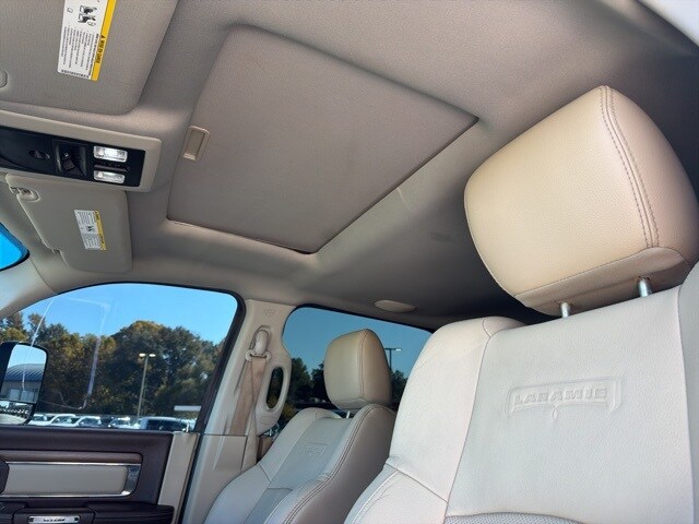 This 2016 Ram 2500 comes equipped with Protection Group, Quick Order Package 2FH Laramie (Front Armrest w/Cupholders), 1 Year Trial (Registration Required), 10 Speakers, 180 Amp Alternator, 4-Wheel Disc Brakes, 5-Year SiriusXM Traffic Service, 5-Year SiriusXM Travel Link Service, 8.4" Touchscreen Display, ABS brakes, Air Conditioning, Alloy wheels, AM/FM radio: SiriusXM, Anti-Spin Differential Rear Axle, Audio memory, Auto-dimming door mirrors, Auto-dimming Rear-View mirror, Automatic temperature control, Brake assist, Bumpers: chrome, Chrome Exterior Mirrors, Compass, Delay-off headlights, Driver door bin, Driver vanity mirror, Dual front impact airbags, Dual front side impact airbags, Electronic Stability Control, Emergency communication system, Exterior Mirrors Courtesy Lamps, Exterior Mirrors w/Heating Element, Exterior Mirrors w/Memory, Exterior Mirrors w/Supplemental Signals, Front anti-roll bar, Front Center Armrest w/Storage, Front dual zone A/C, Front fog lights, Front reading lights, Fully automatic headlights, Garage door transmitter, GPS Antenna Input, GPS Navigation, HD Radio, Heated door mirrors, Heated Front Seats, Heated front seats, Heated steering wheel, Illuminated entry, Integrated Voice Command w/Bluetooth, Keyless Enter-N-Go, Leather steering wheel, Leather Trim 40/20/40 Bench Seat, Low tire pressure warning, Manufacturer's Statement of Origin, Media Hub (2 USB, AUX), Memory seat, Occupant sensing airbag, Outside temperature display, Overhead airbag, Overhead console, Panic alarm, ParkView Rear Back-Up Camera, Passenger door bin, Passenger vanity mirror, Power door mirrors, Power driver seat, Power Folding Chrome Trailer Tow Mirrors, Power Folding Mirrors, Power passenger seat, Power steering, Power Sunroof, Power windows, Radio data system, Radio: Uconnect 8.4, Radio: Uconnect 8.4 NAV, Rear seat center armrest, Rear step bumper, Remote keyless entry, Remote Proximity Keyless Entry, Remote Start System, Security system, SiriusXM Satellite Radio, SiriusXM Traffic, SiriusXM Travel Link, Speed control, Split folding rear seat, Steering wheel mounted audio controls, Tachometer, Tilt steering wheel, Tip Start, Traction control, Trailer Tow Mirrors, Trip computer, Turn signal indicator mirrors, Uconnect Access, Variably intermittent wipers, Ventilated front seats, Voltmeter, Wheel to Wheel Side Steps, and Wheels: 18" x 8.0" Polished Aluminum.
